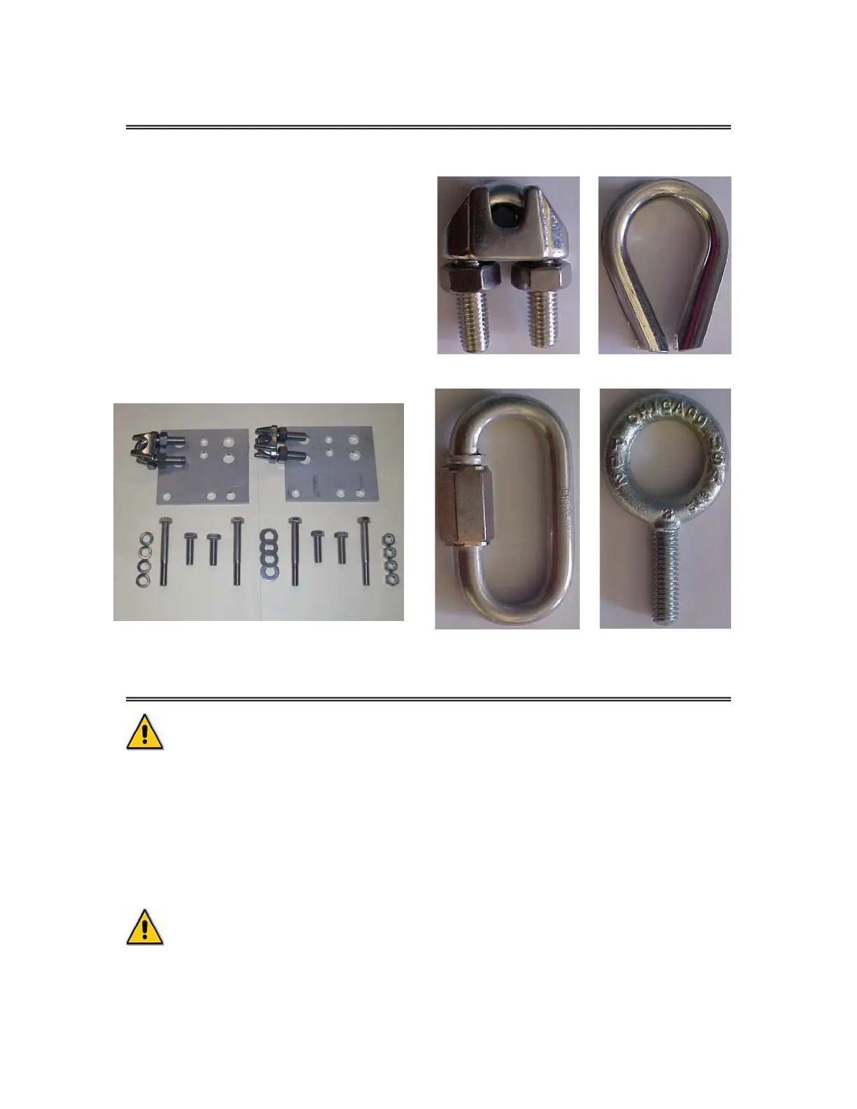 clamps) and thimbles are sized for