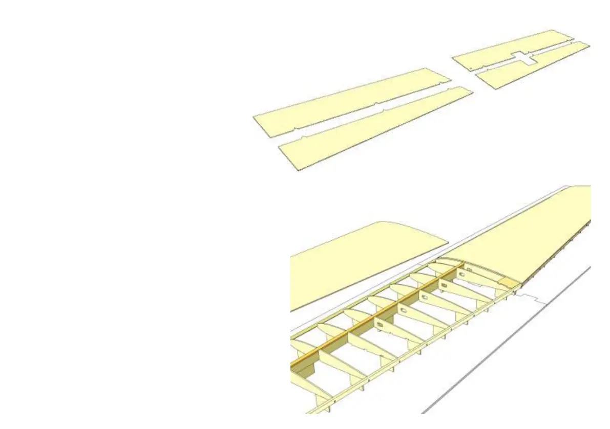 the first 5 mm of ribs. Fit upper wing sheeting in place on leading