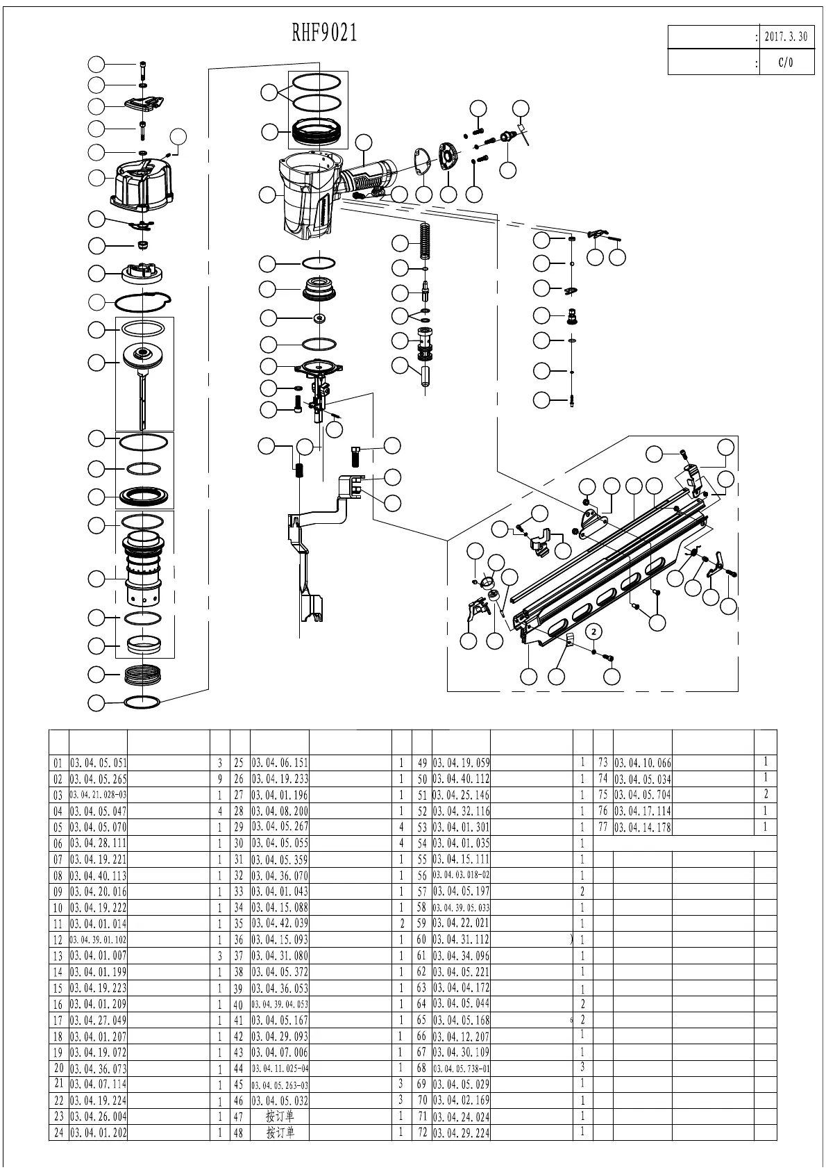 Aeropro RHF9021 - Explosive View and Parts List