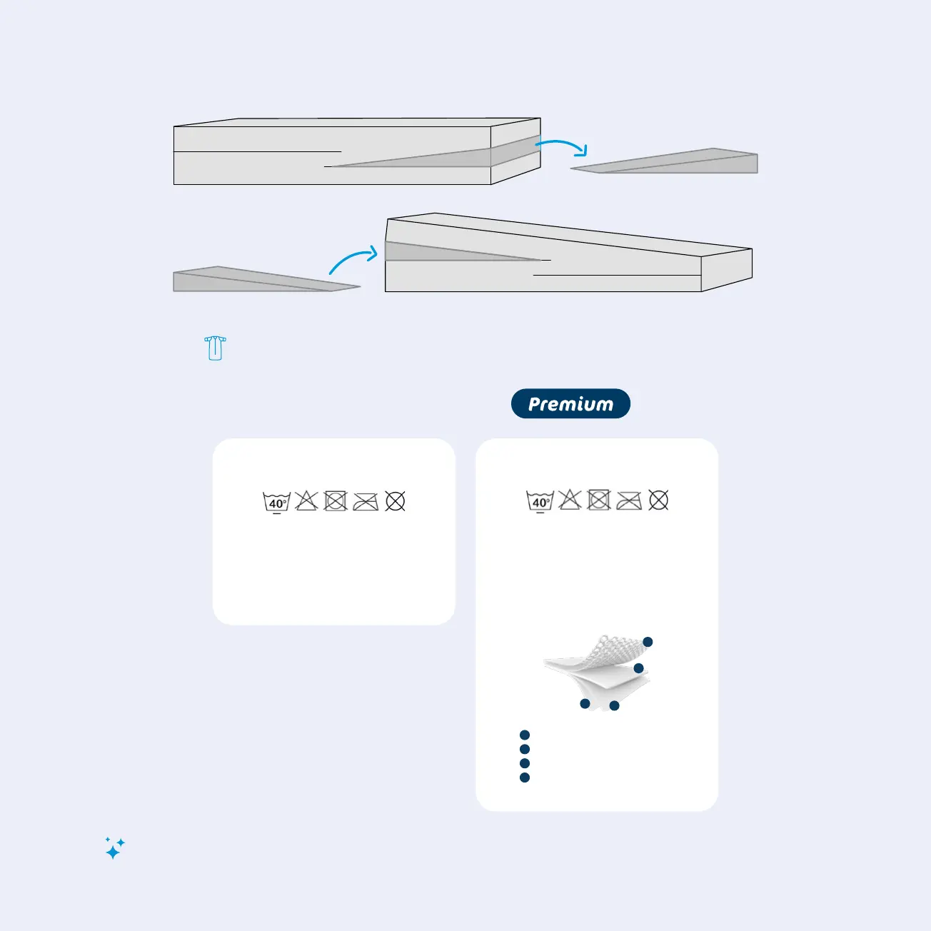 Der Schaumstoff der Premium-Matratzen kann wie nachfolgend beschrieben von einer achen in eine schräge Position verändert werden: