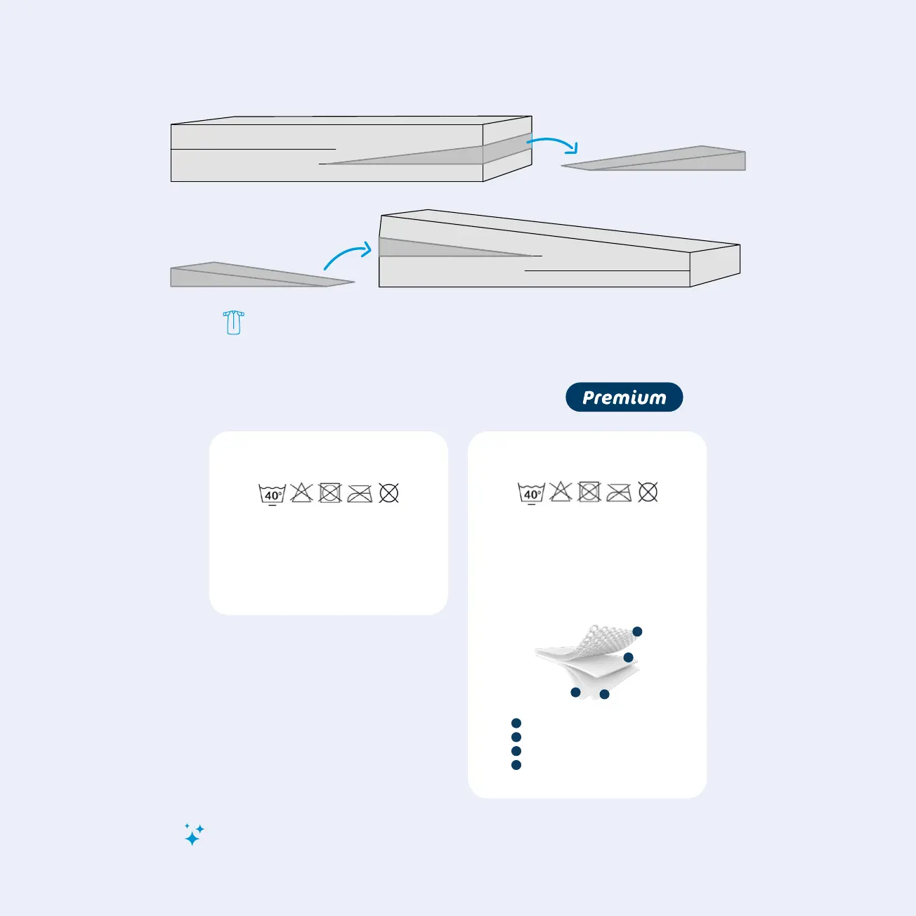 La espuma de los colchones Premium se puede regular de la posición plana a la inclinada tal y como se indica a continuación: