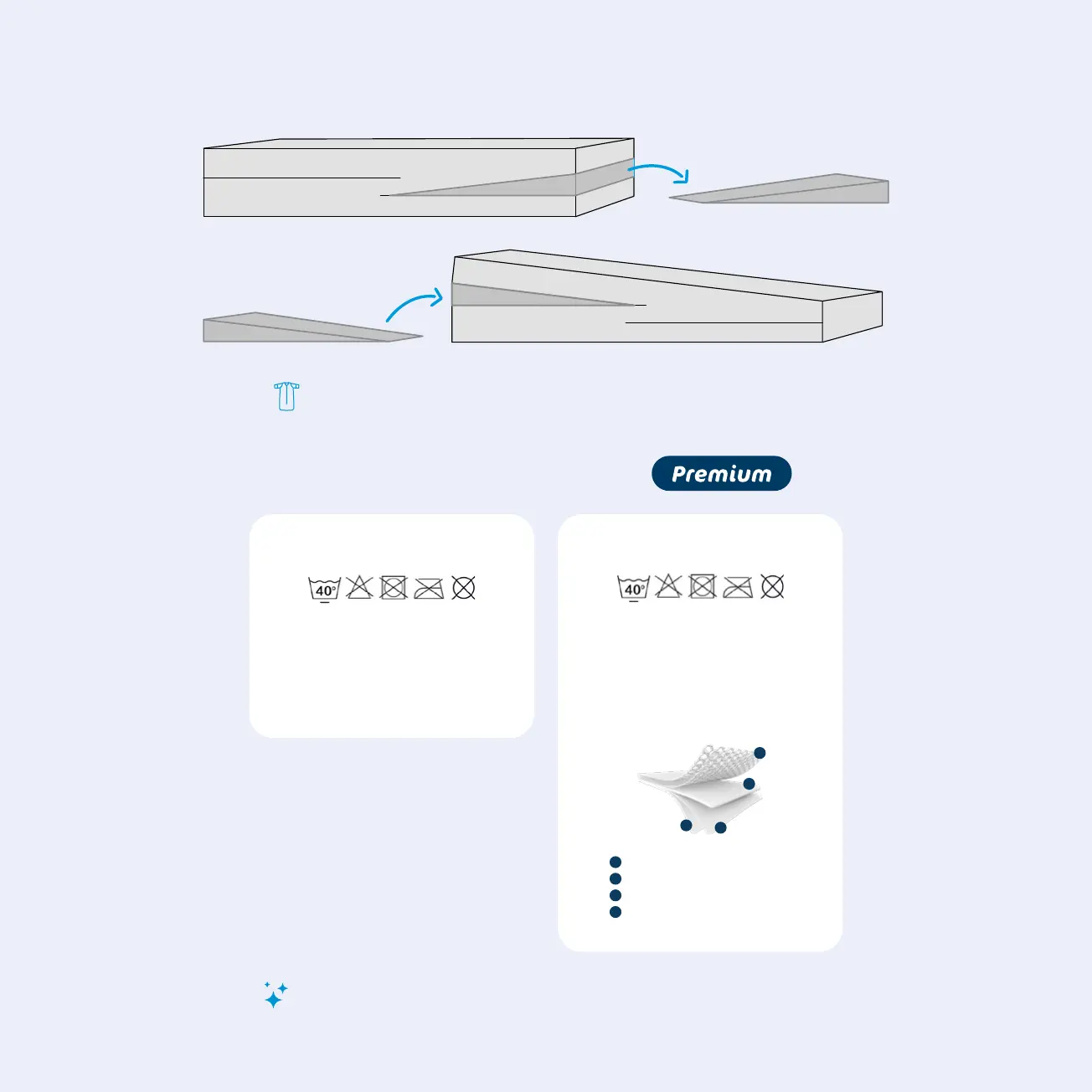 Pianka materacy Premium może być regulowana od płaskiej po pochyloną pozycję, zgodnie z poniższymi instrukcjami: