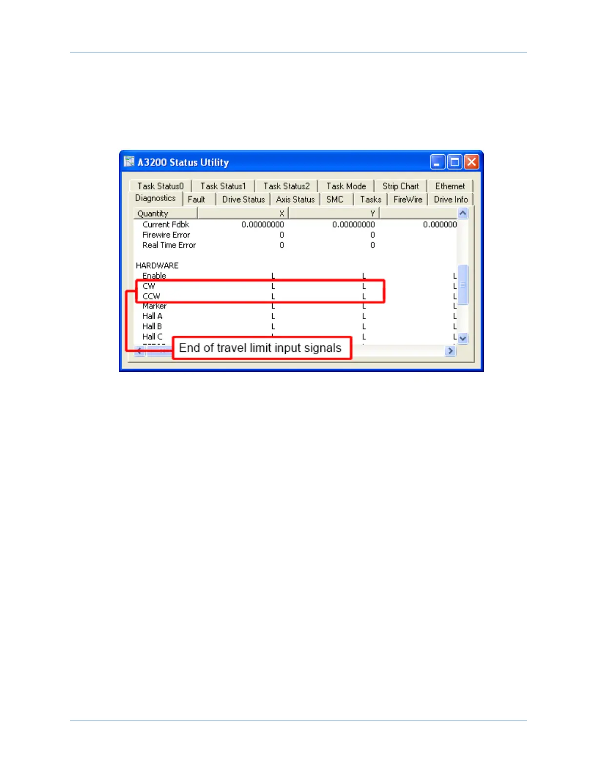 level of the EOT limit inputs may be viewed in the StatusUtility (shown in Figure 2-12).