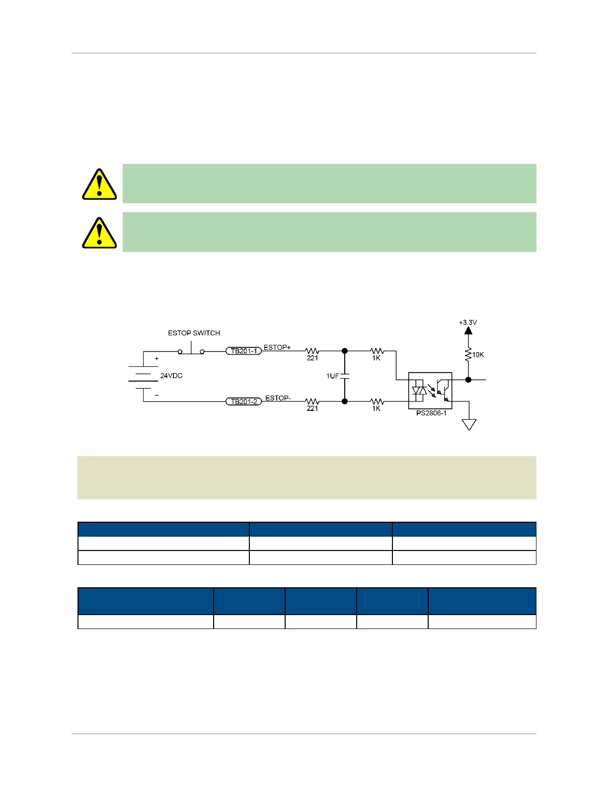 The ESTOP input is scaled for an input voltage of 5-24 volts.