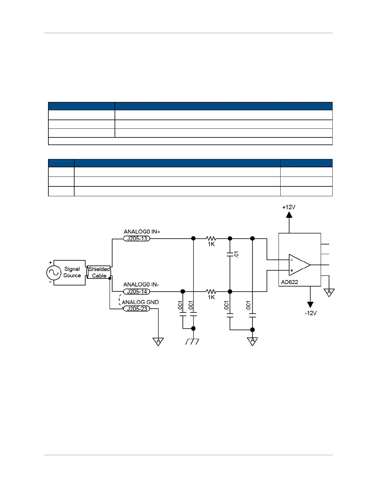 the negative input and the analog source signal to the positive input. A floating signal source should be