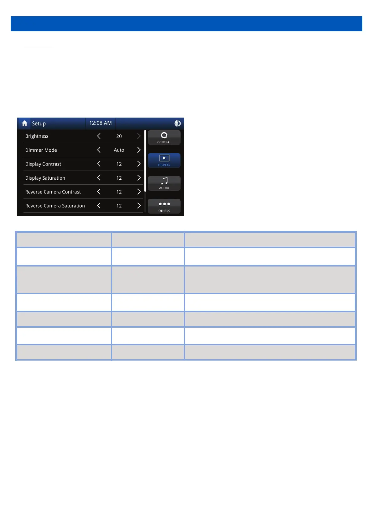 Touch “Display” on the Setup Menu display, then select a feature you want to adjust.