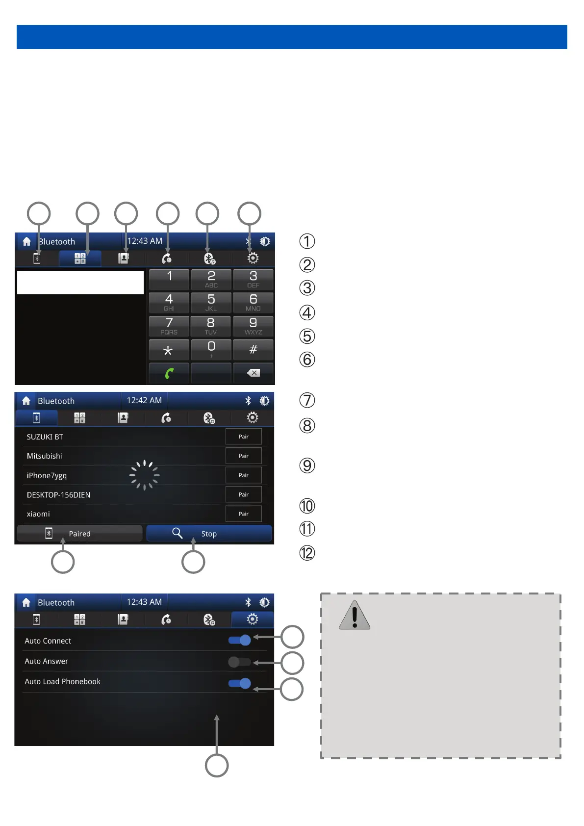 When the phone connects to the unit successfully, all of the phone’s Bluetooth enabled