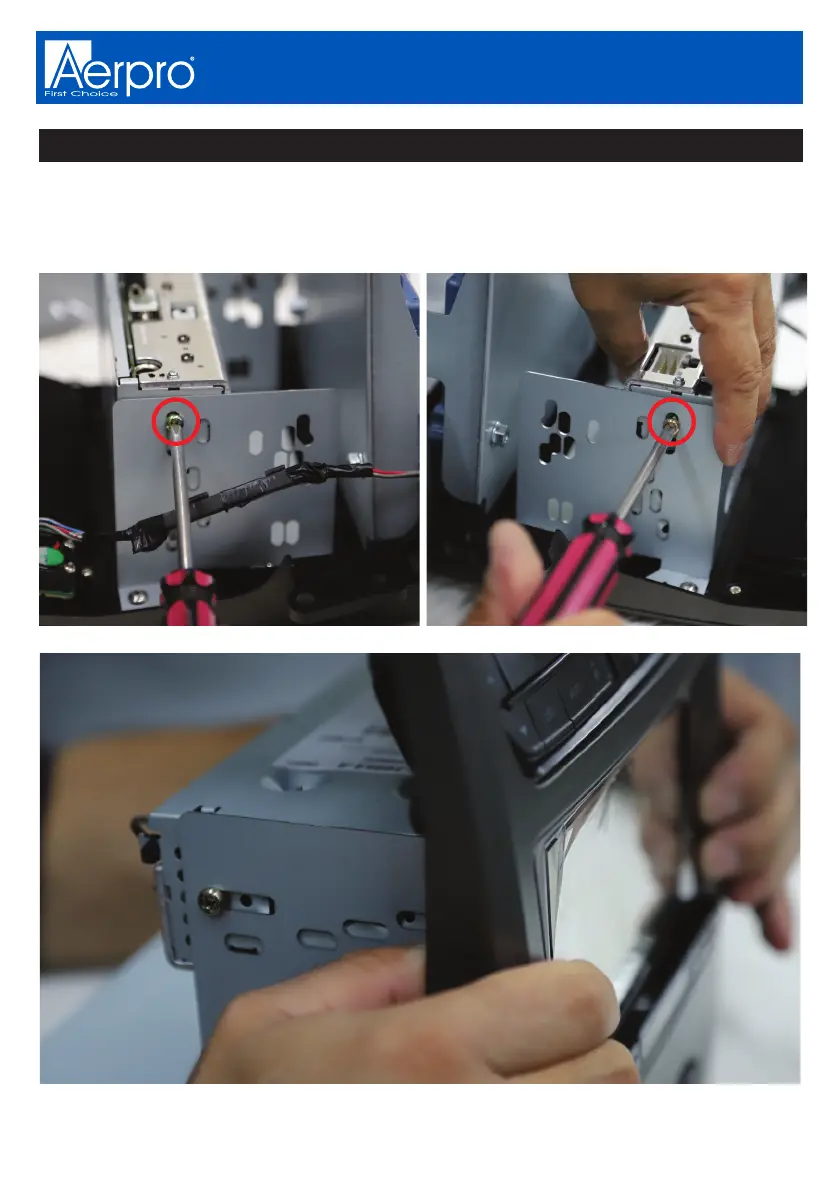 Mount the aftermarket head-unit to the mounting brackets. Leave the screws a little