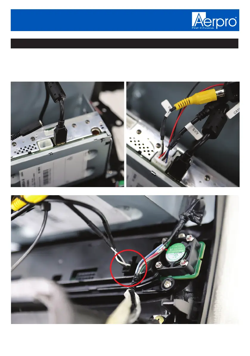 Connect the USB/USBs if present. Connect the reverse camera input to the video