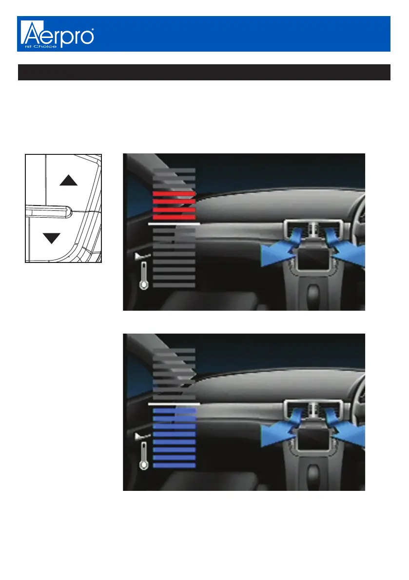 Press up to increase temperature, press down to decrease temperature. Left hand