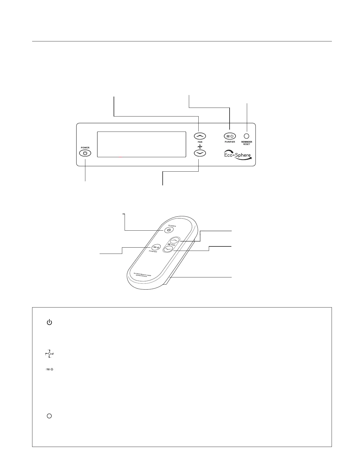 Turns the unit ON and OFF. The EcoSphere can be turned on or off using either the included remote