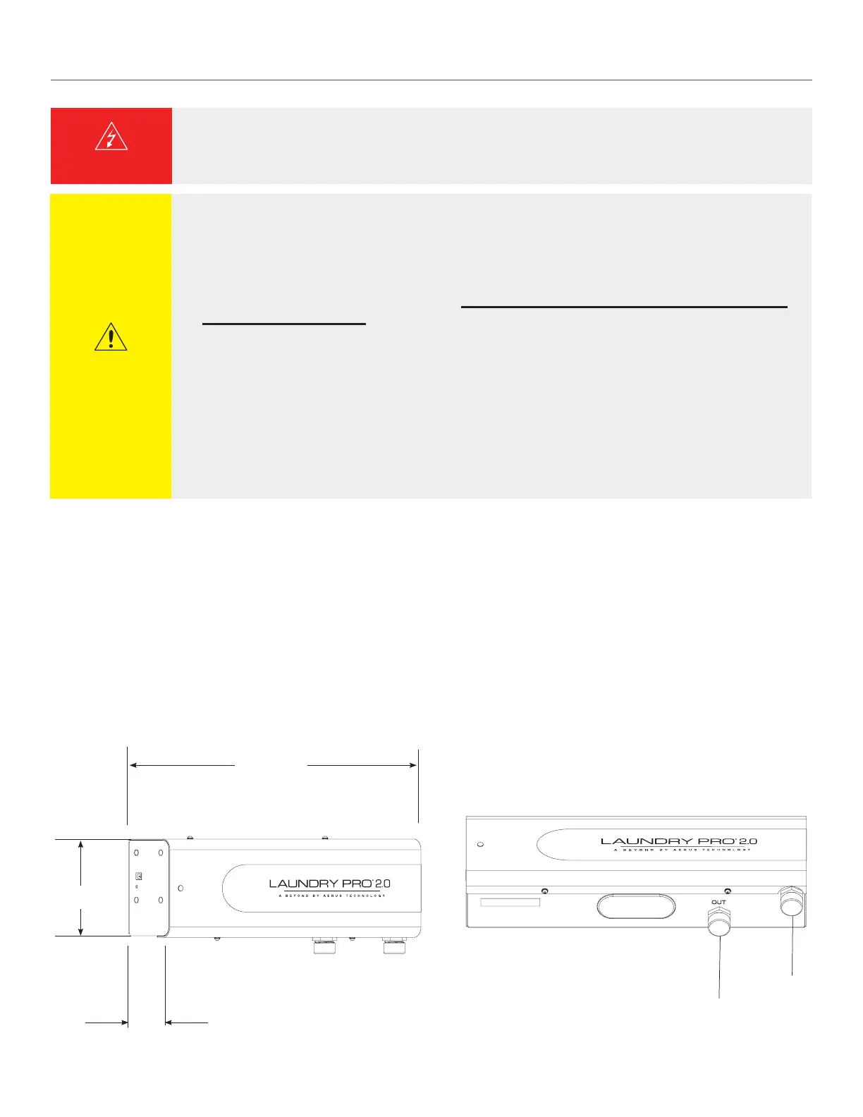 The Laundry Pro 2.0 must never be installed in areas where water may freeze since the unit will always maintain some water in the unit, the water valve,