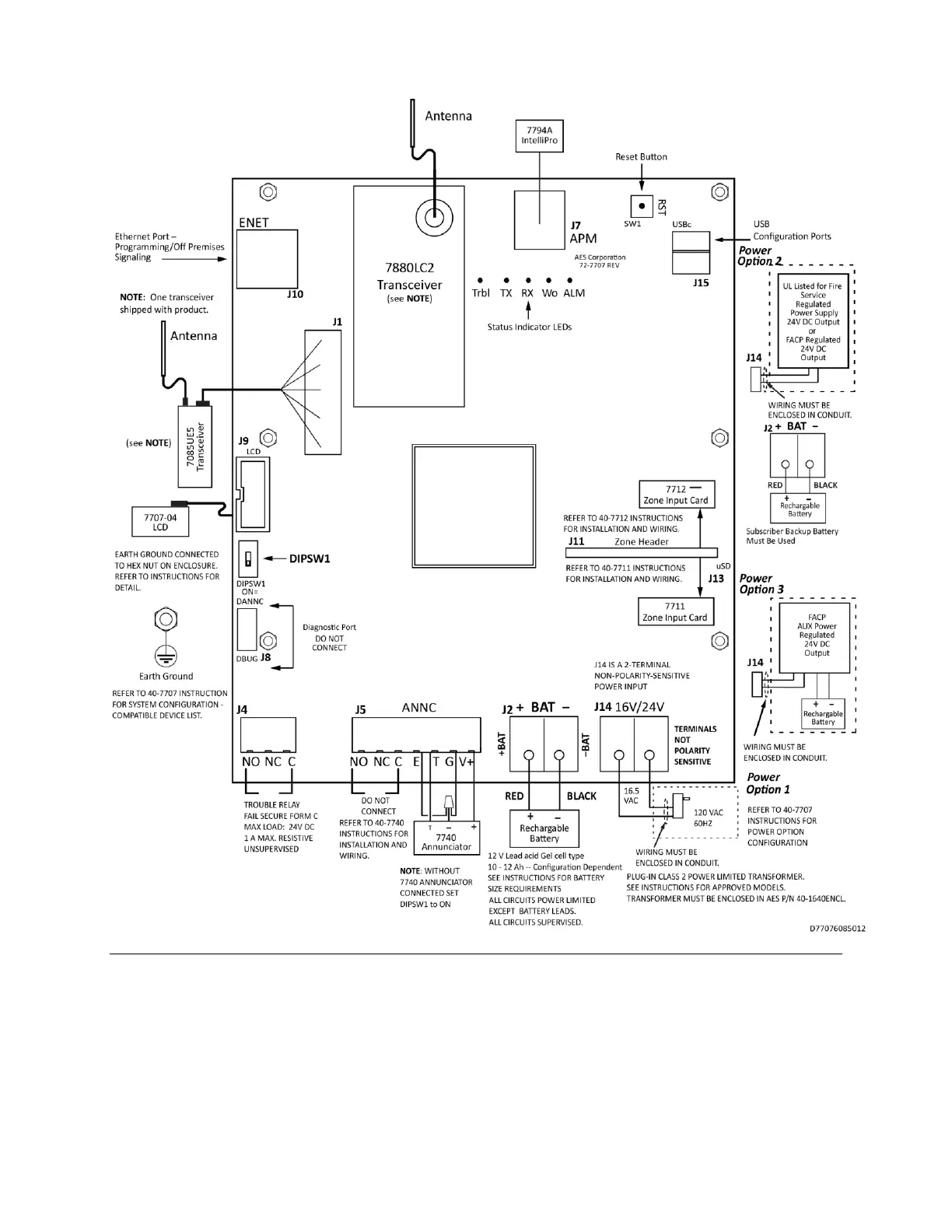 AES 7707 - Figure 6. Field Wire Connections - 7707 Fire Subscriber Unit