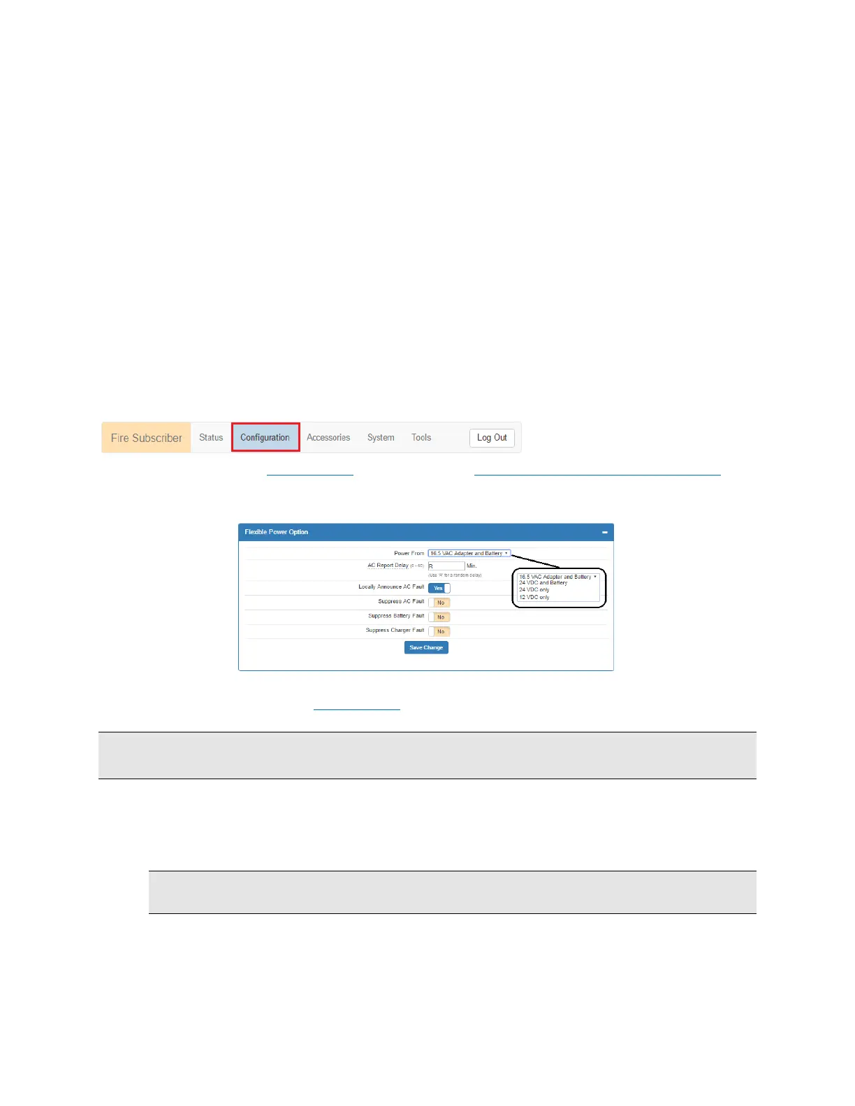 Note: Primary (16.5 V AC) power failure fault reporting must be enabled for compliance with UL 864