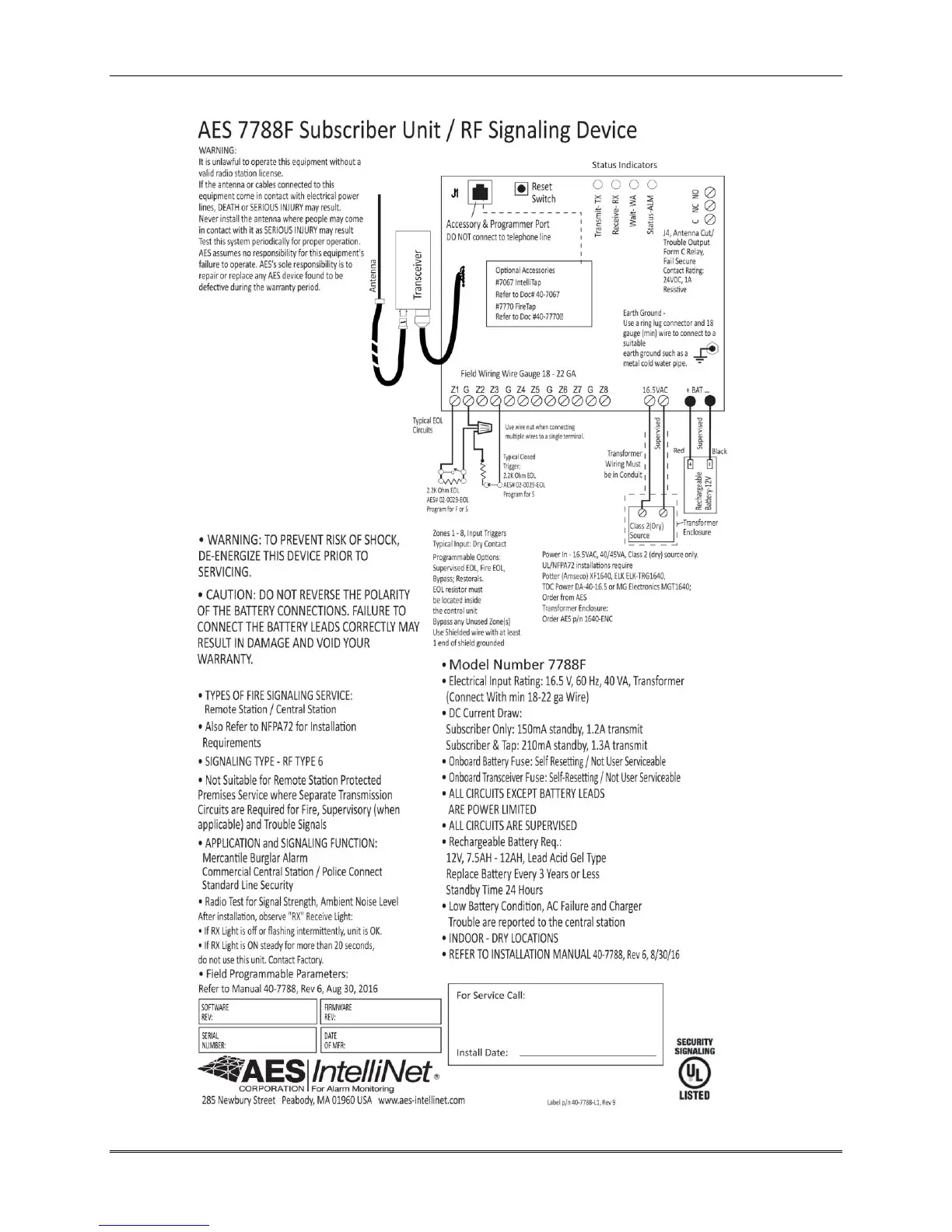 AES 7788 Series RF Subscriber Unit Installation and Operation Manual
