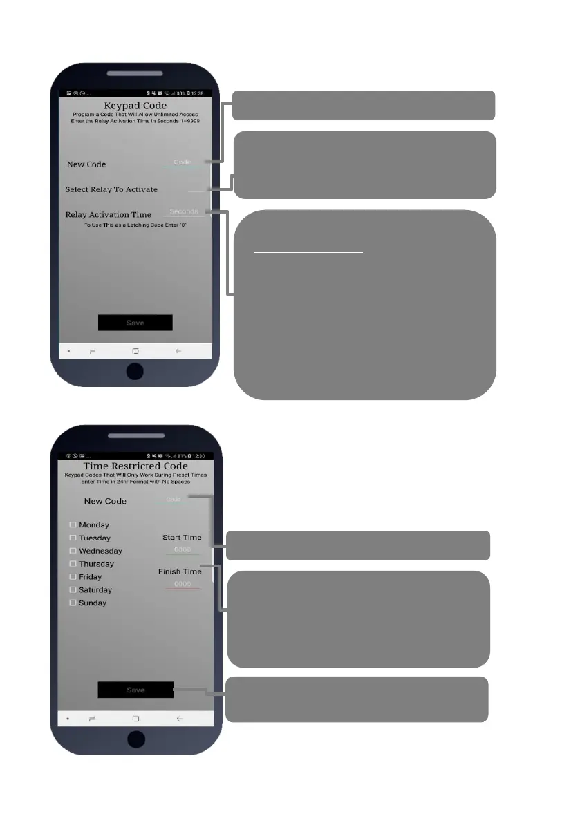 Up to 20 codes can be added which will only operate during