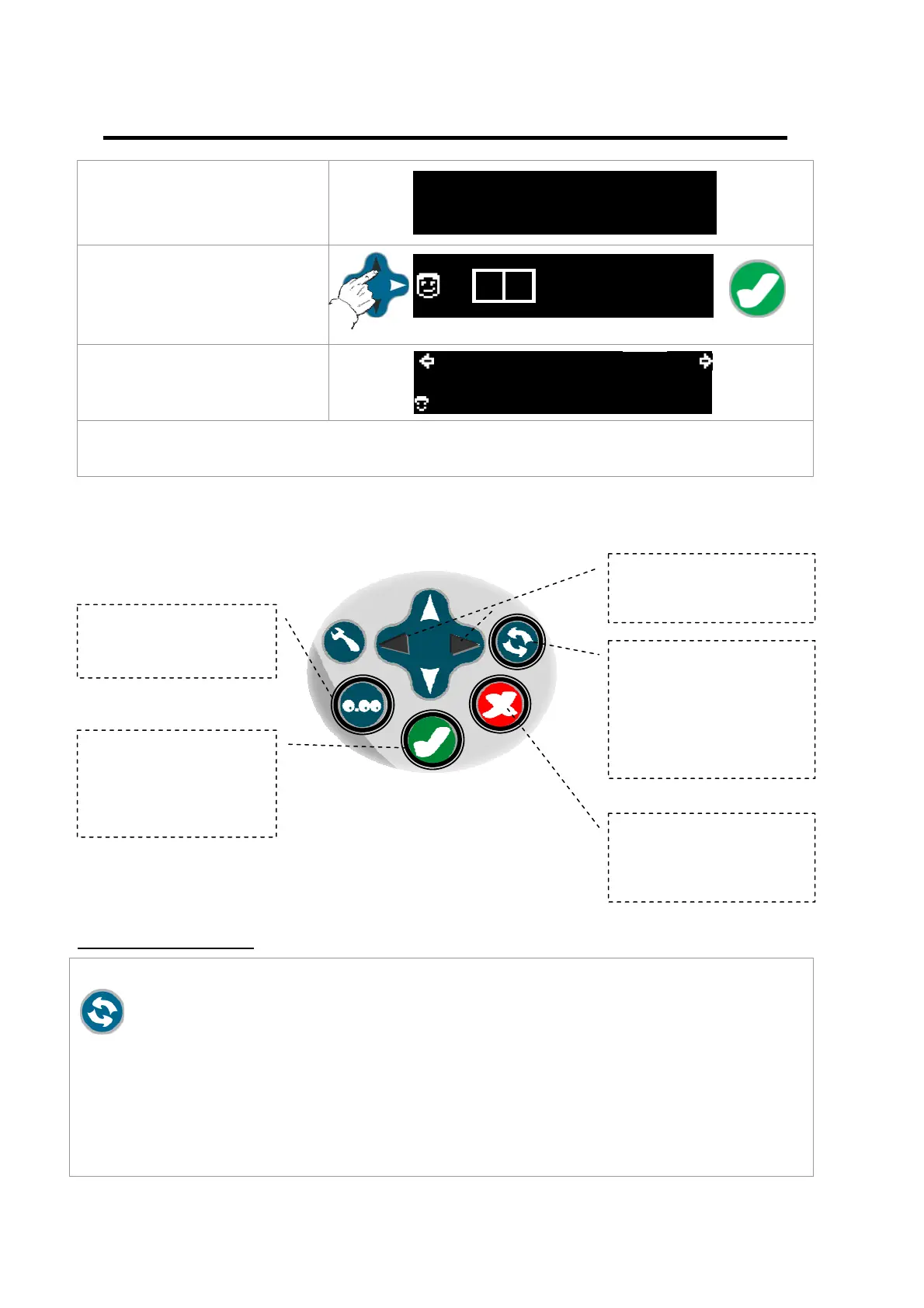 - A left or right (< or >) cursor on the screen indicates which pump is currently