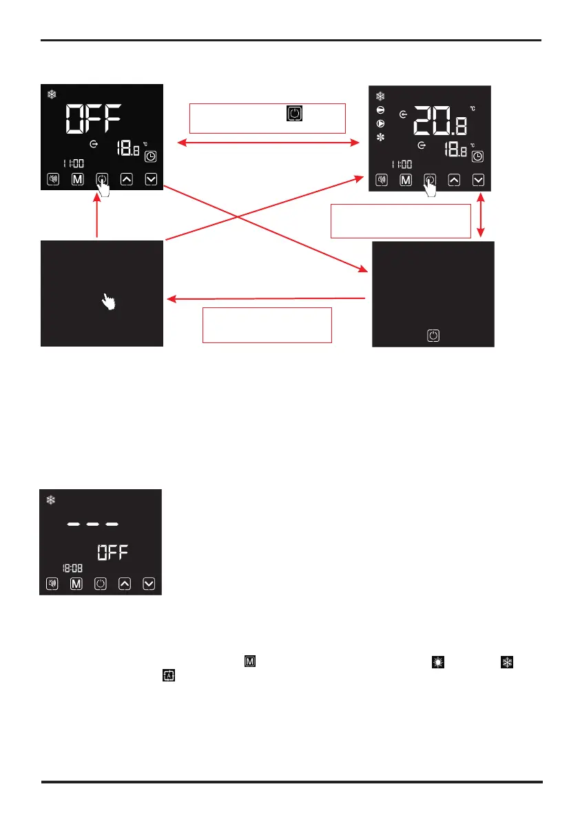 Under the main interface, Short press" "to switch the unit among heating , cooling