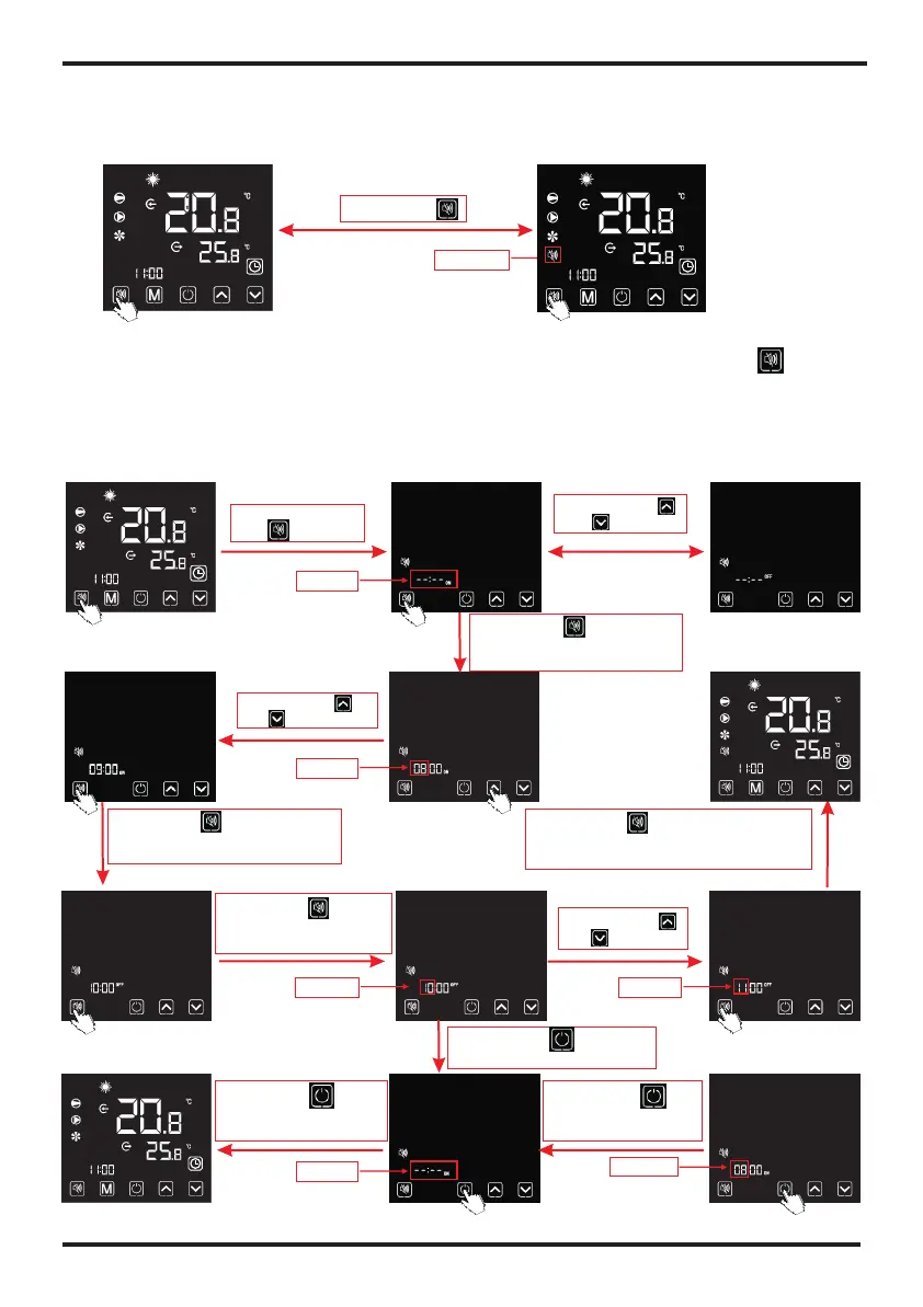 Note: Under the Timer ON/OFF setting interface, if the timing symbol and entire time digits flash at