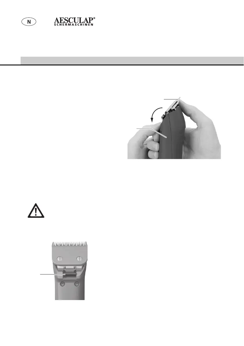 ¾ Sett klippehodet 12 på knivhengselet.