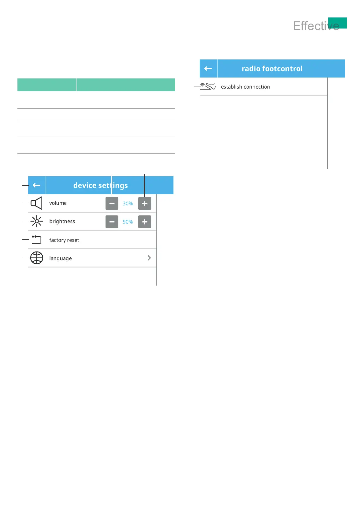 ► Change system volume/brightness: Press button “Increase value” g or