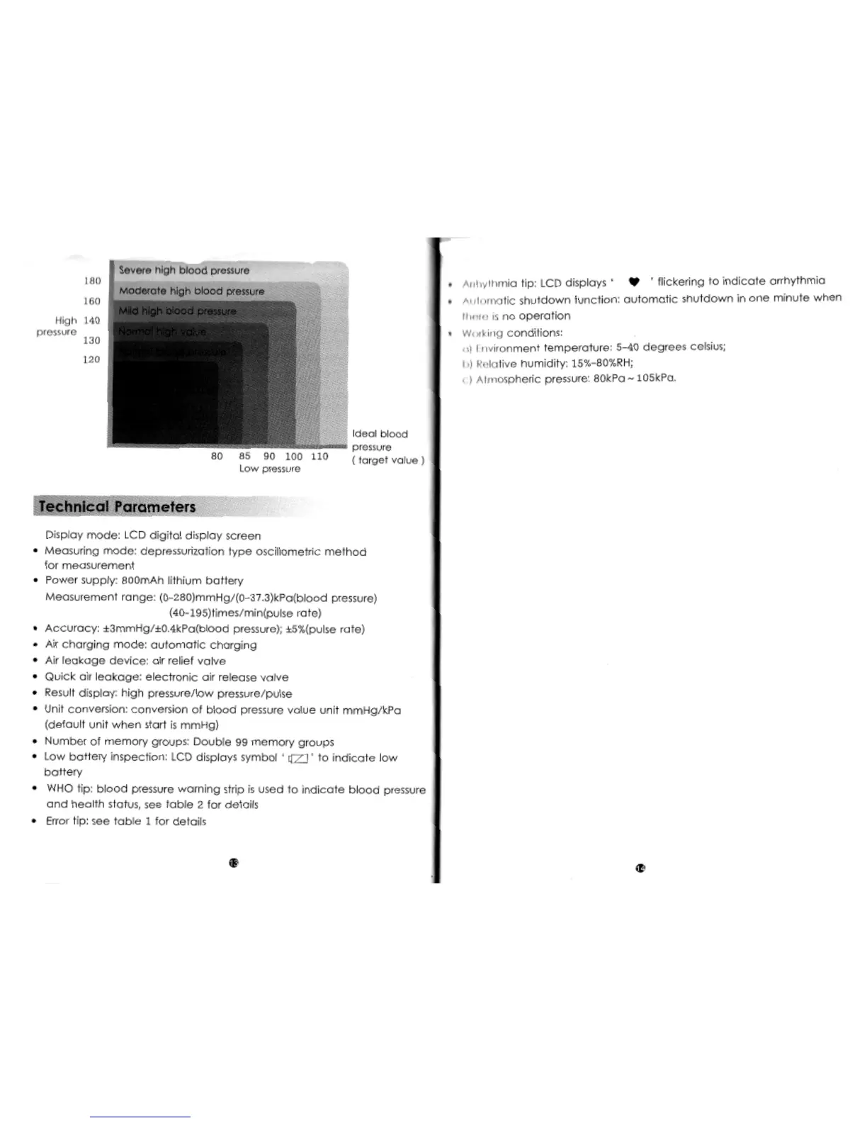 • Accuracy: ±3mmHg/±0.4kPa(blood pressure); ±5%(pulse rate)