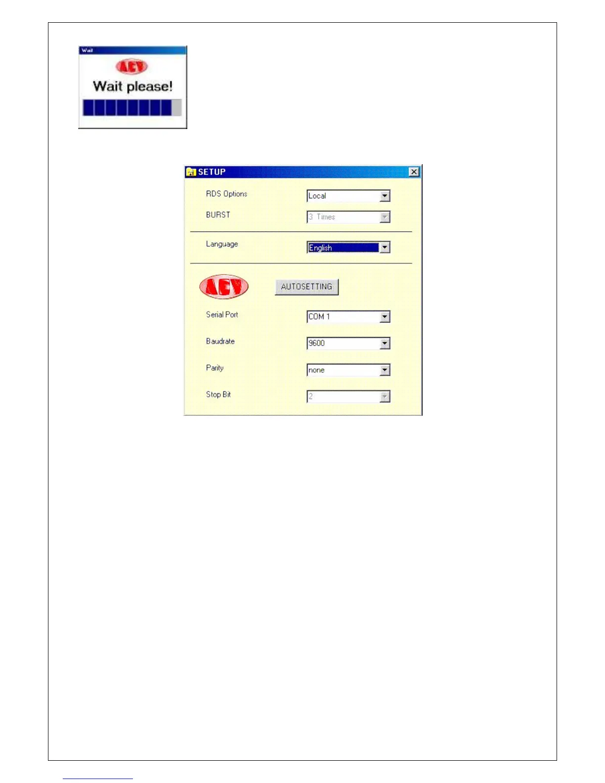 the communication parameters of the serial port. It may in any event always be entered