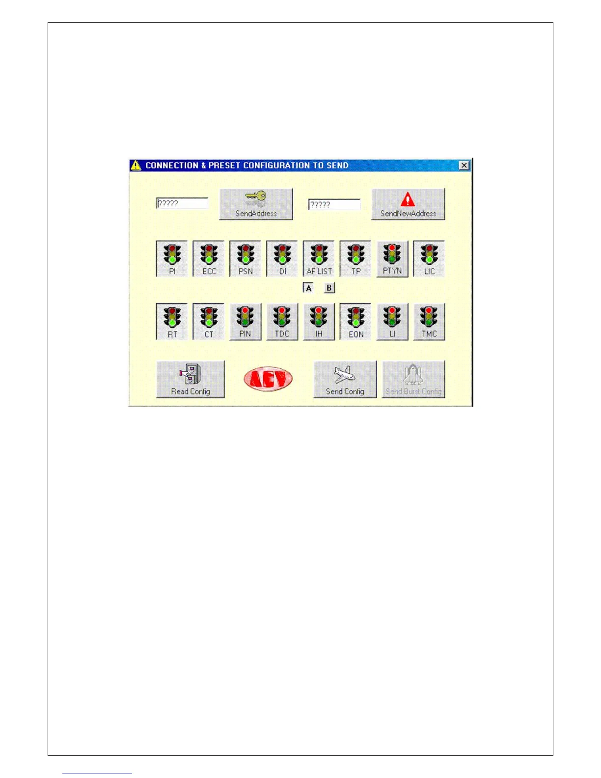 means of the “traffic lights”. In “satellite” configuration, Send Config and Send Burst will be
