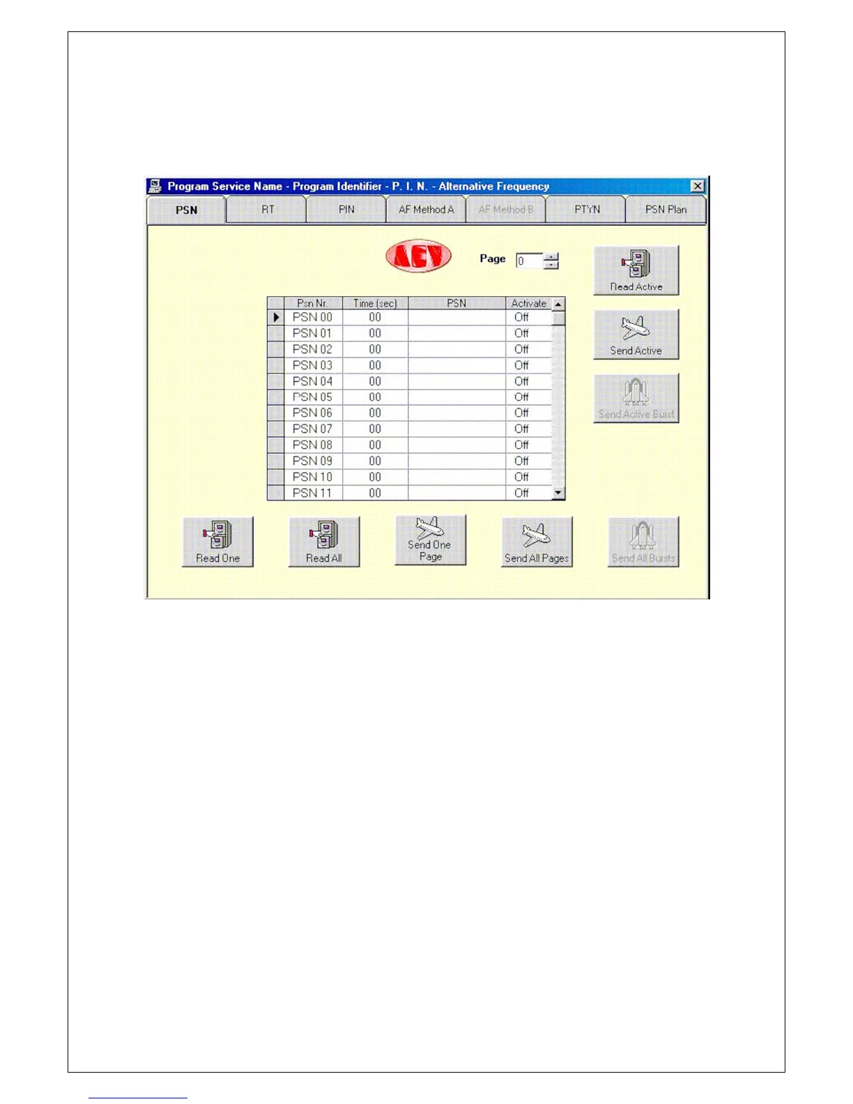 Send Act ive sends the page displayed, which will be immediately transmitted on the rds coder.
