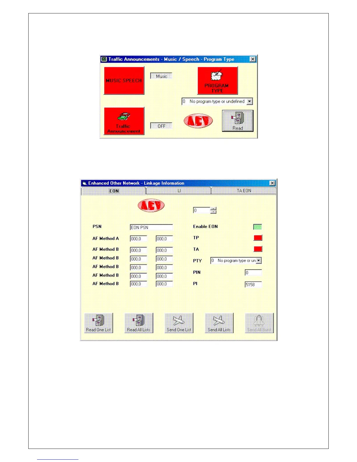box and then press the relative push button. The Read option is enabled only in "via satellite"