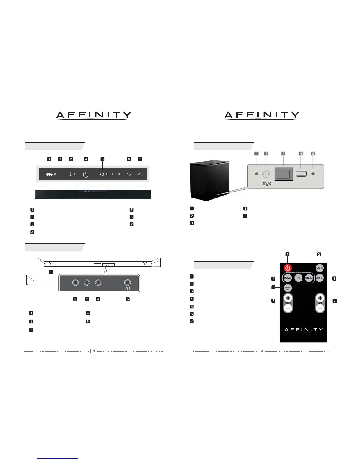 Press :ON/standby; Hold: to connect with subwoofer