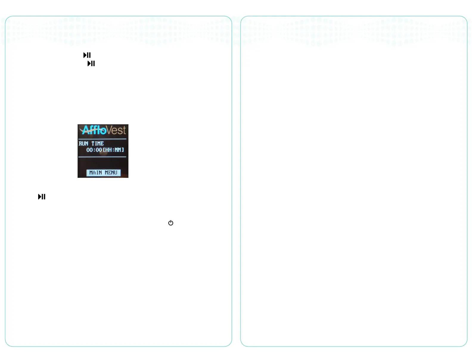 To turn off the AffloVest controller, press and hold the Standby ( ) button for at least