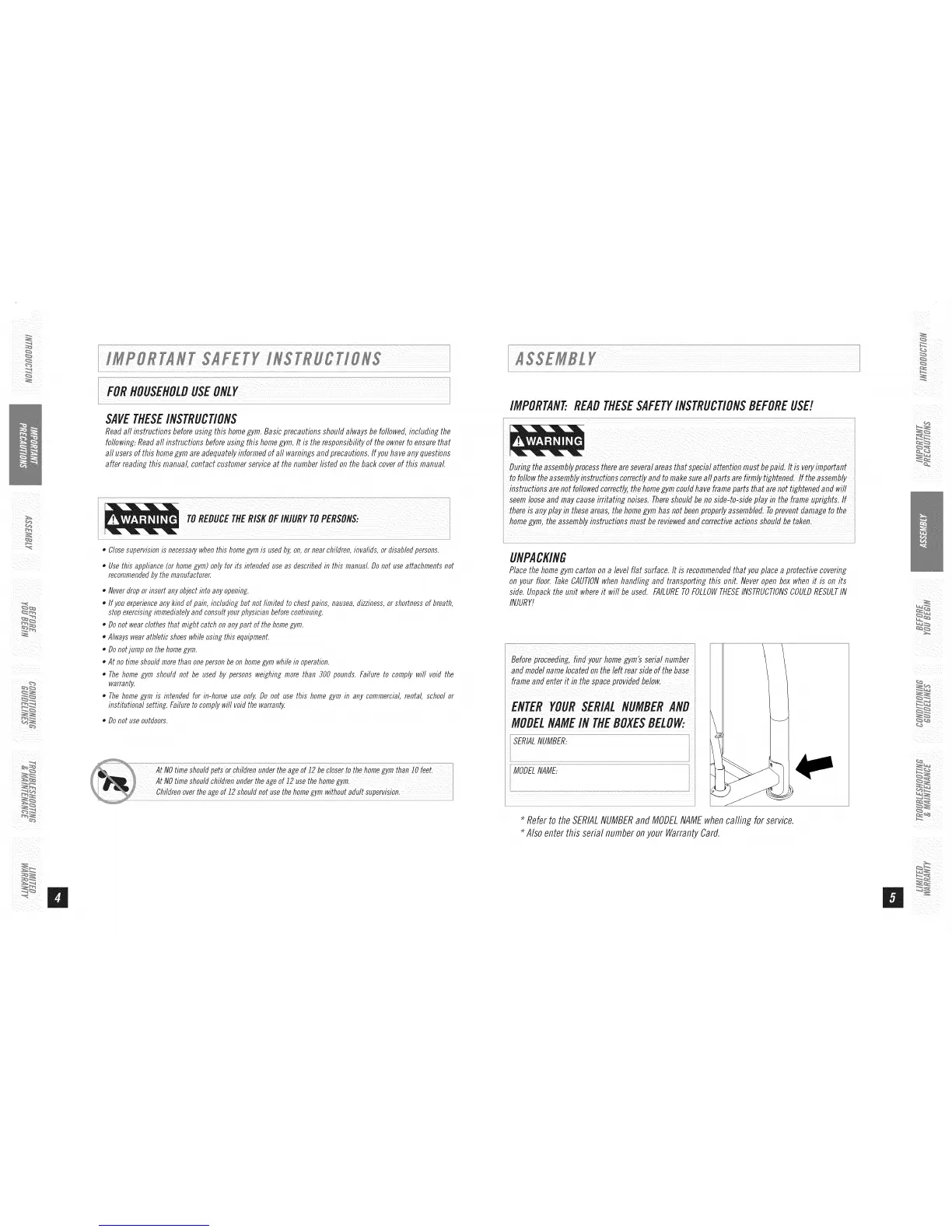 , Closesupervision is necessarywhenthis homegym is usedby,on, or near children,invalids, or disabledpersons.