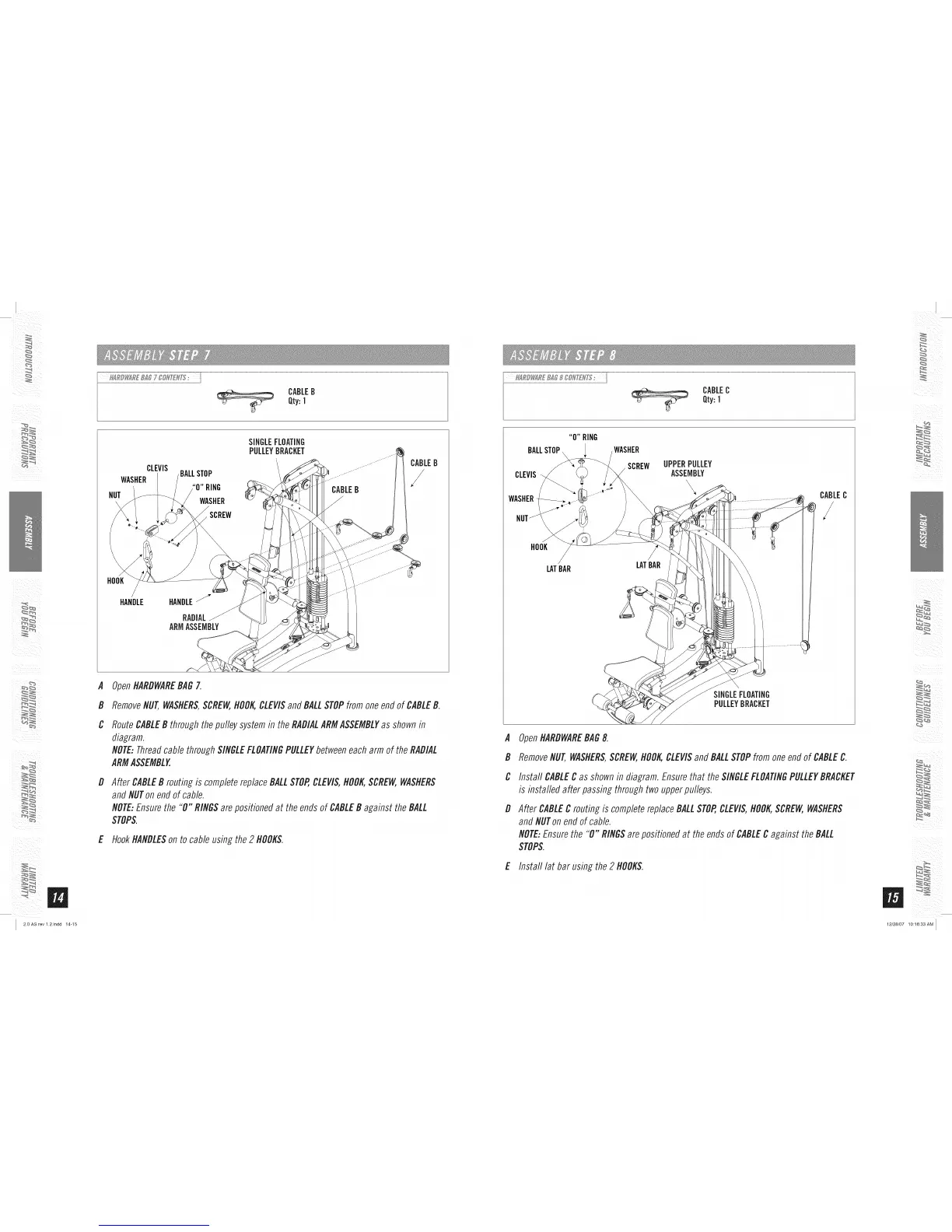 NOTE:Threadcable through SINGLEFLOATINGPULLEYbetween each arm of the RADIAL