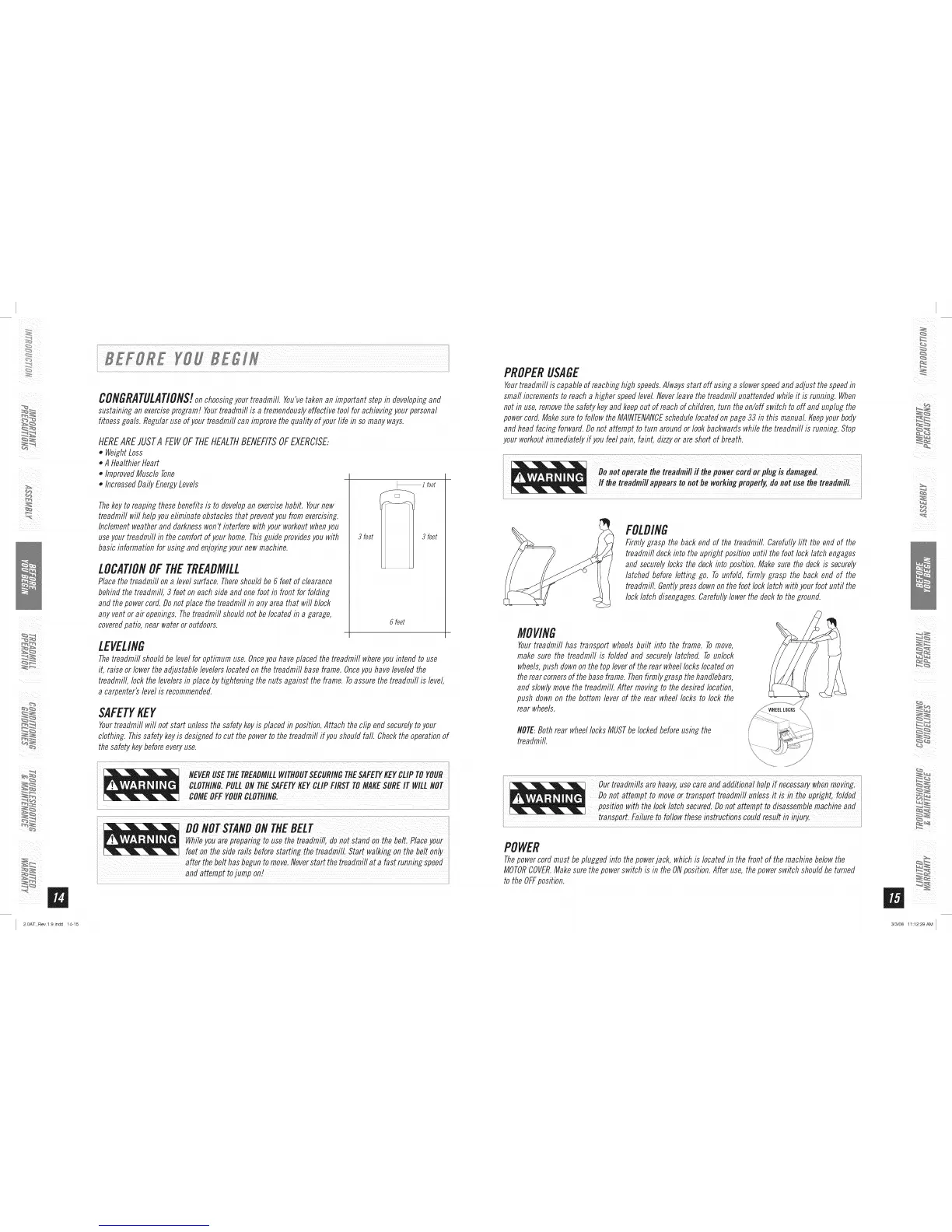 after the belt has begun to move:Never start t,hetreadmi!l at