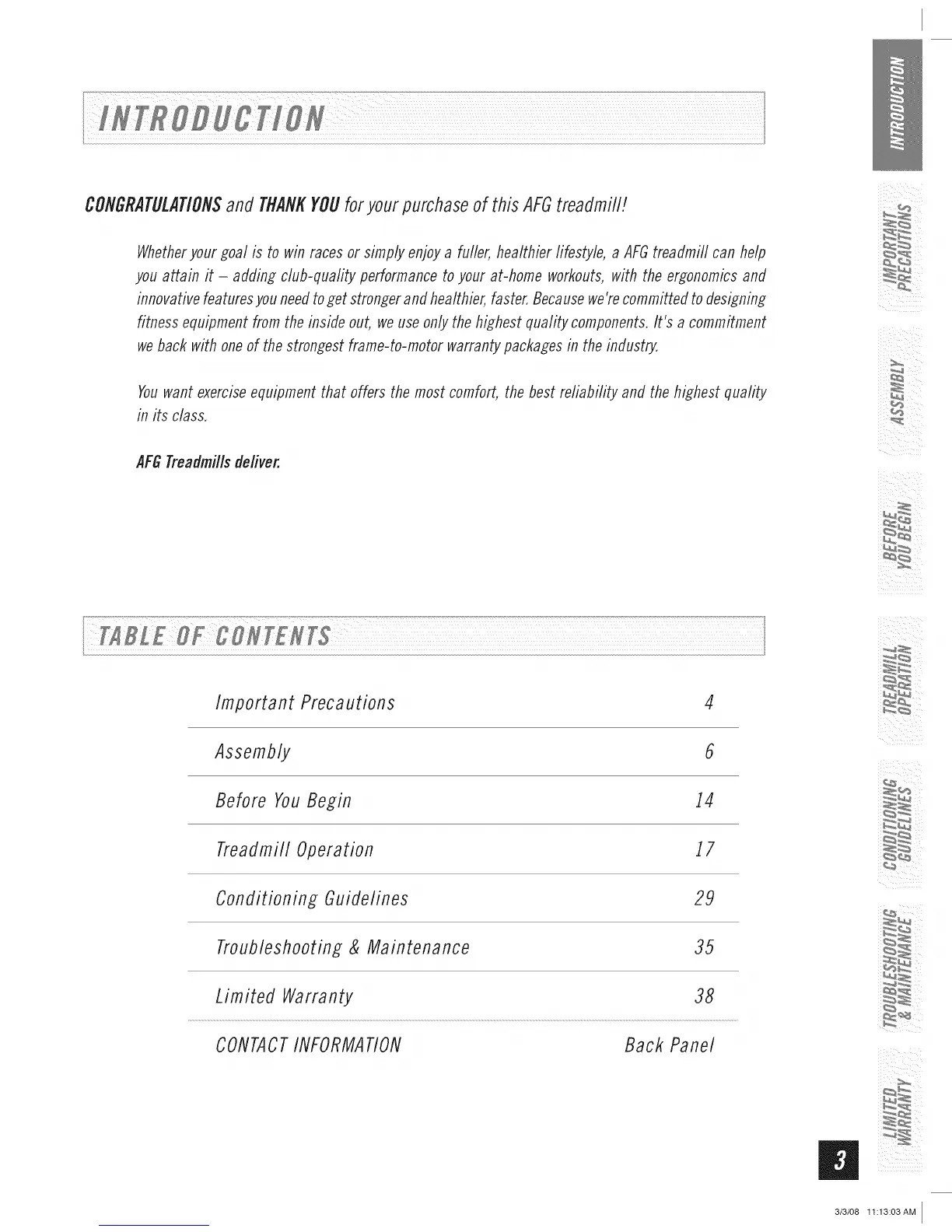 CONGRATULATIONSand THANKYOUforyourpurchaseof this AFGtreadmill!