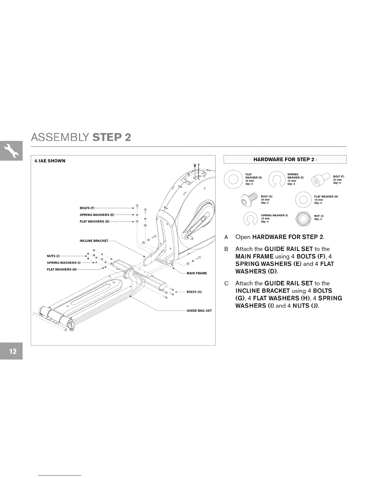 WASHERS (I) and 4 NUTS (J).