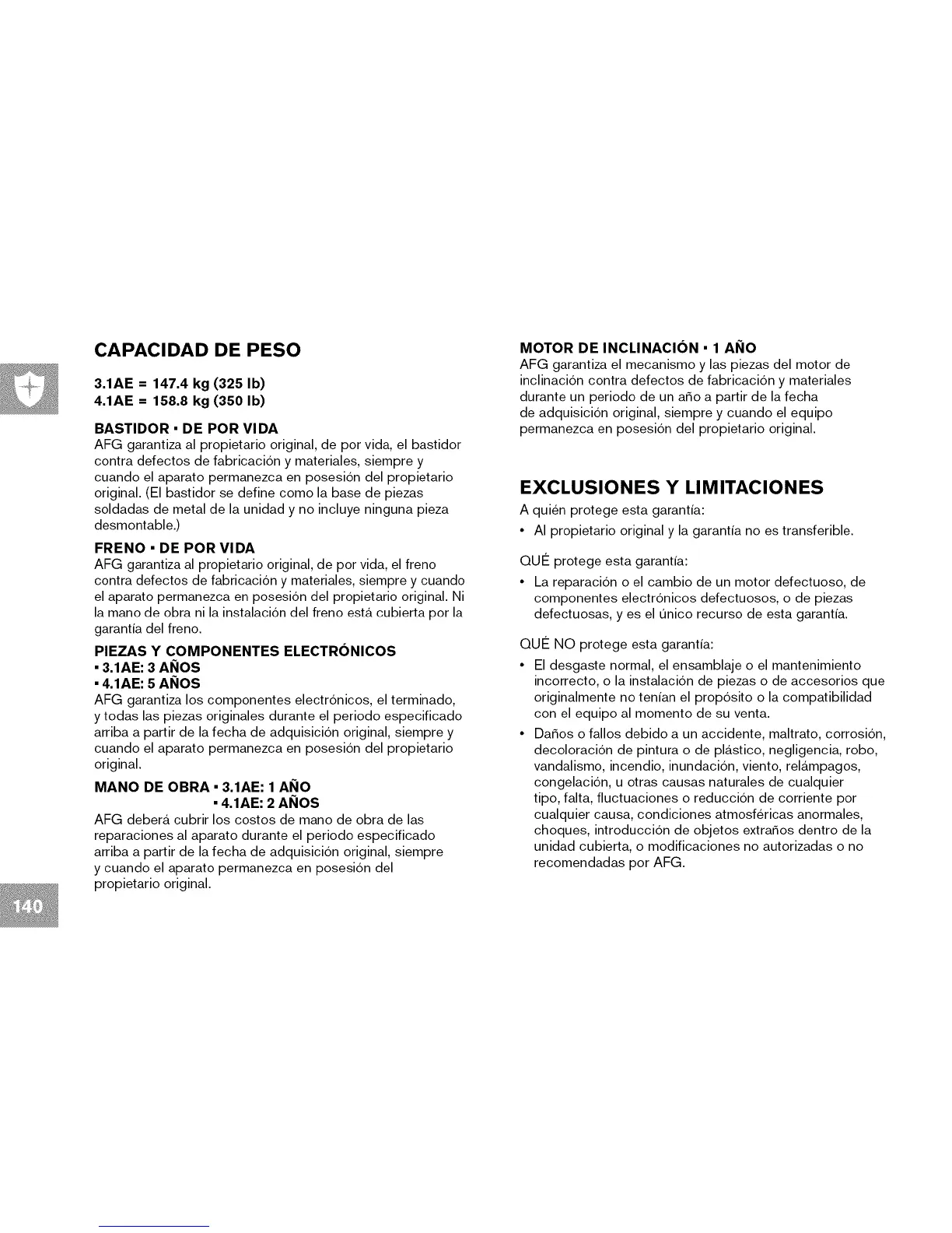 AFG garantiza al propietario original, de por vida, el freno