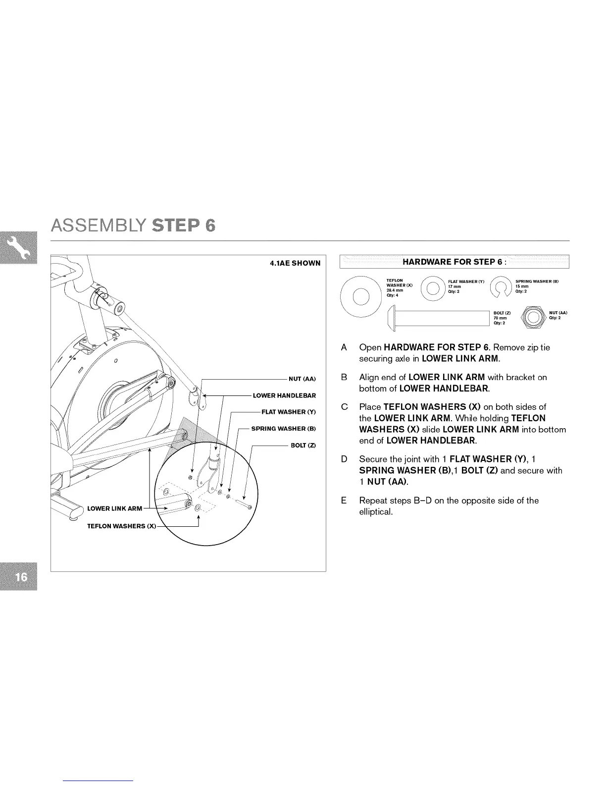 WASHERS (X) slide LOWER LINK ARM into bottom