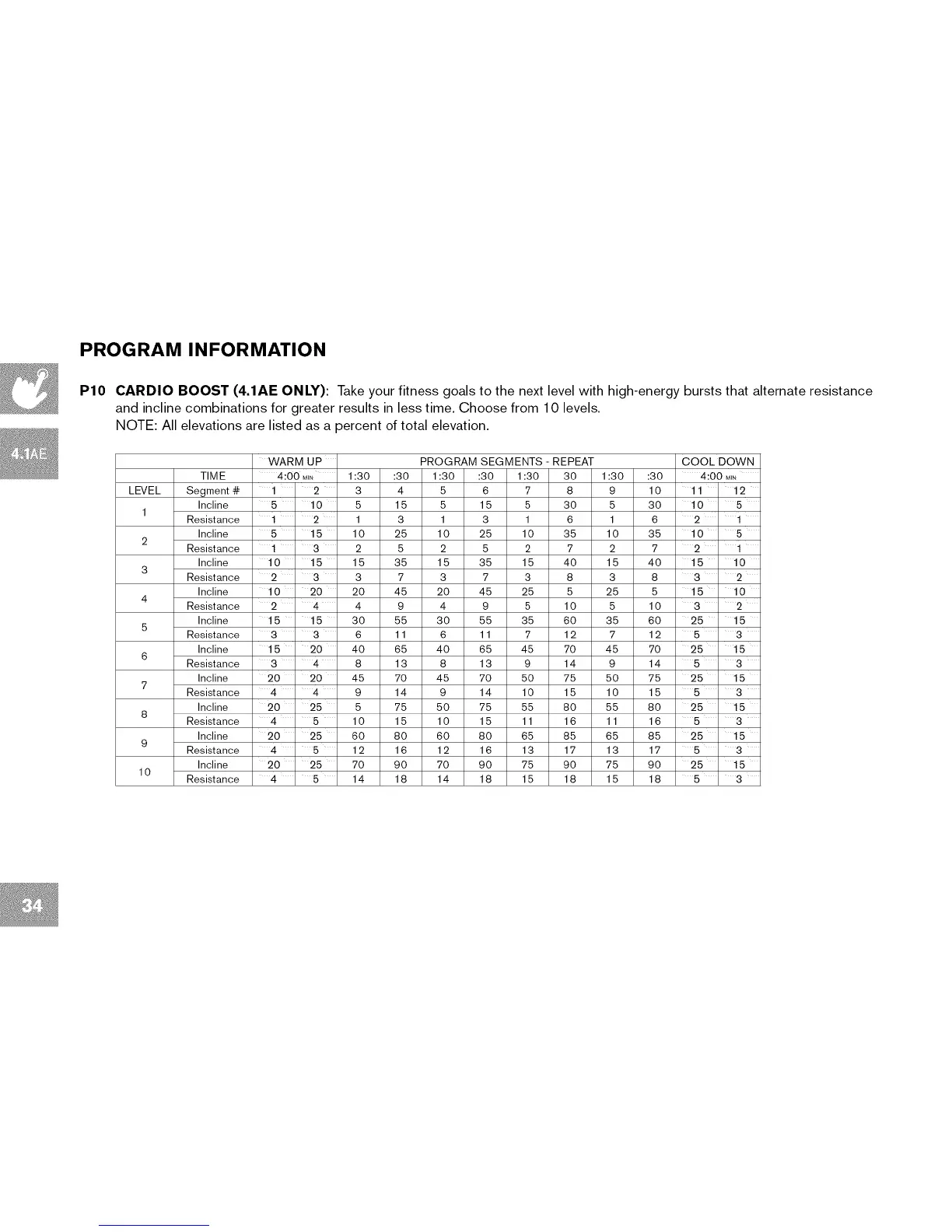 and incline combinations for greater results in less time. Choose from 10 levels.