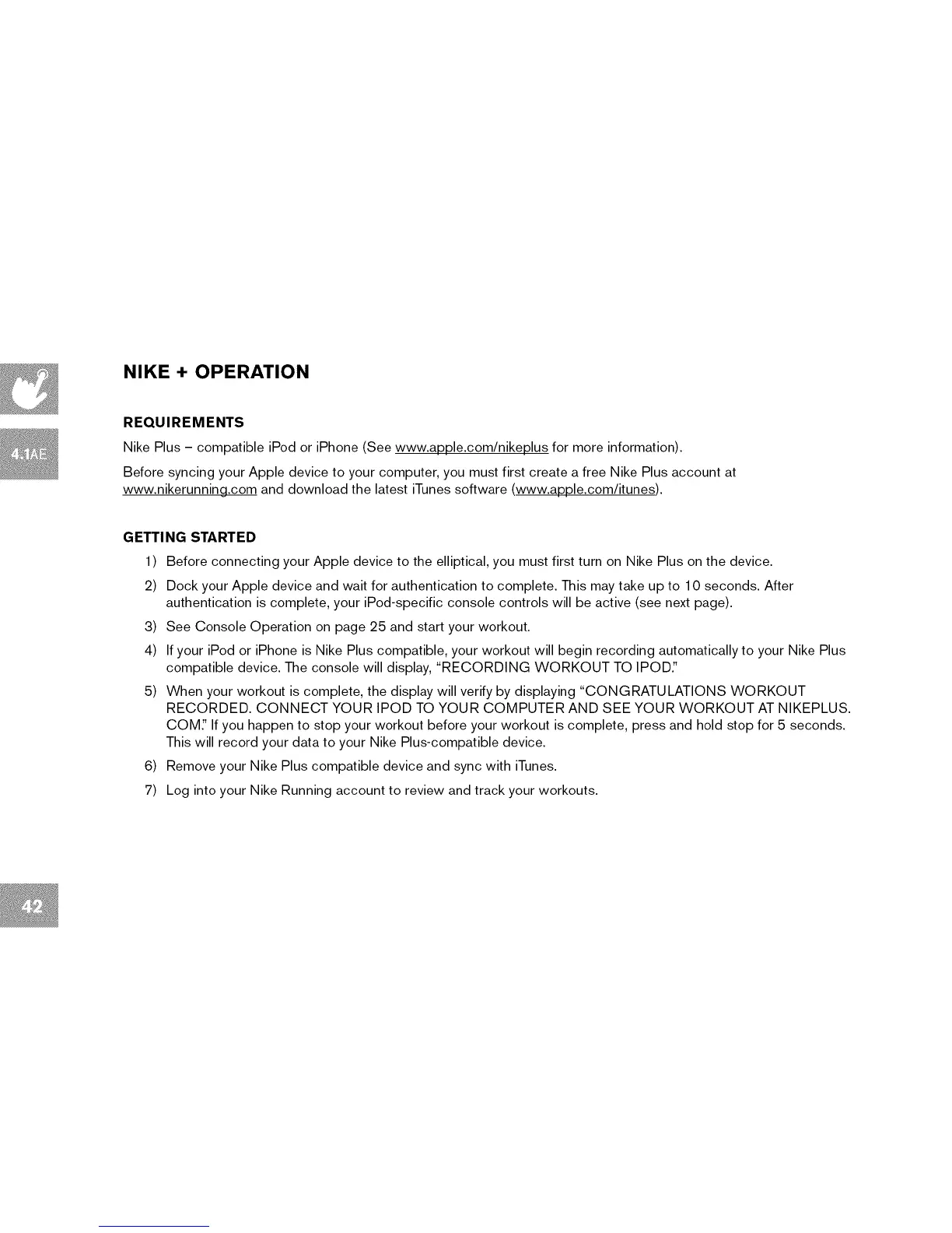 compatible device. The console will display, "RECORDING WORKOUT TO IPOD"