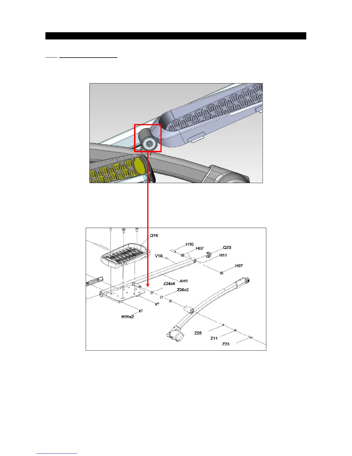1. Loosen the screws and washers to remove the link arm from the arm set.