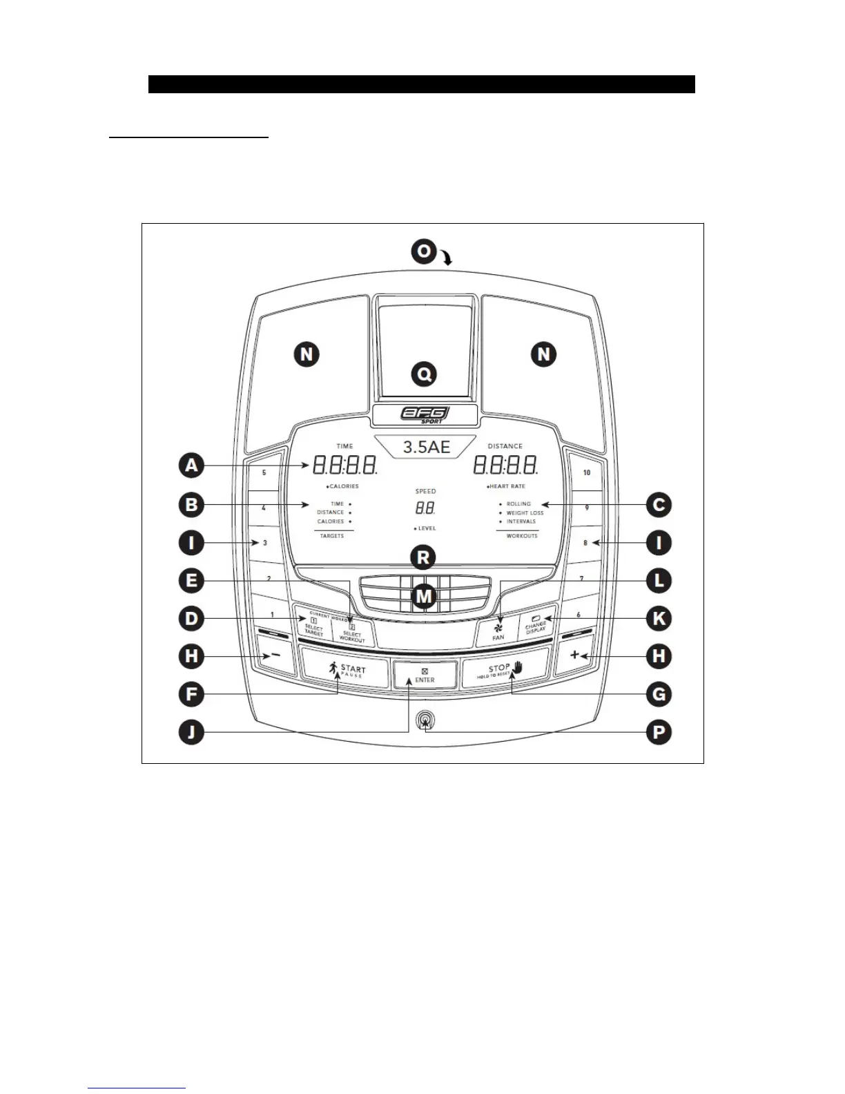 : press to pause/end your workout. Hold for 3 seconds to reset the console.