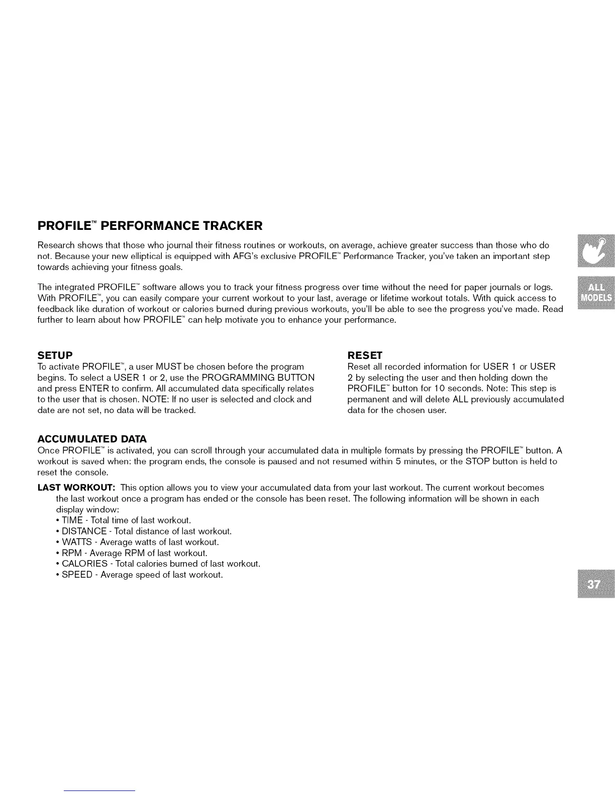 not. Because your new elliptical is equipped with AFG's exclusive PROFILE TM Performance Tracker, you've taken an important step