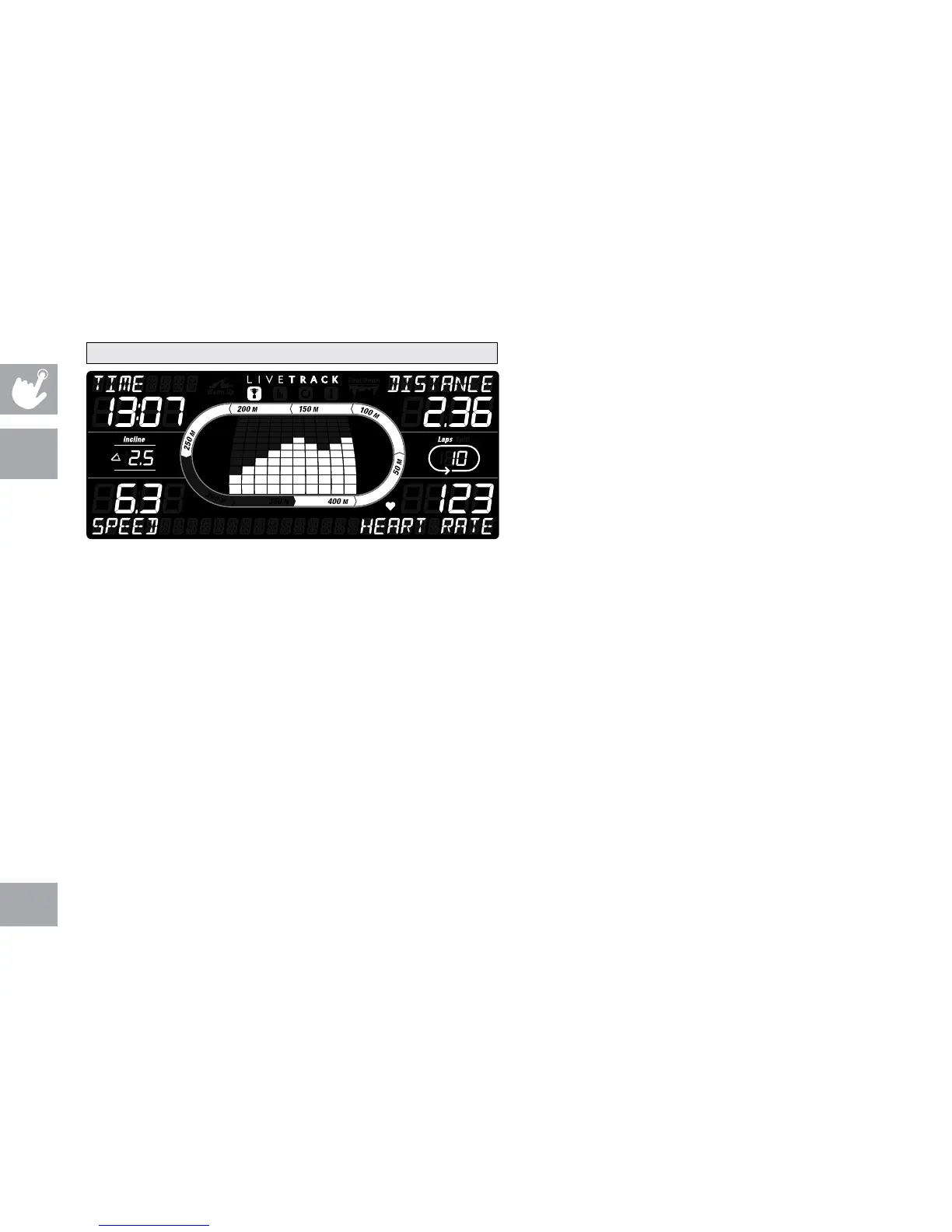 • LAPS: Shows how many 400 meter (¼ mile) laps have