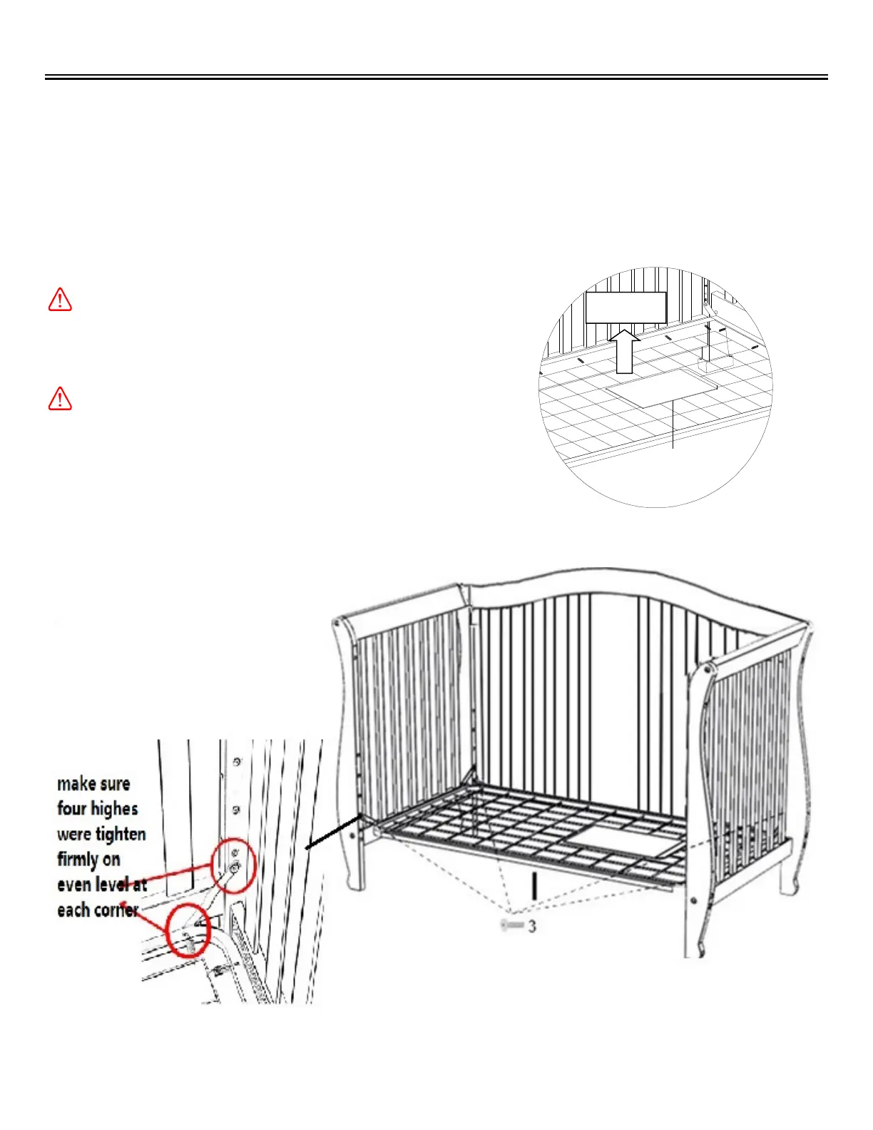 corners of the mattress support and use 4 Bolts (#3) to attach hangers to the