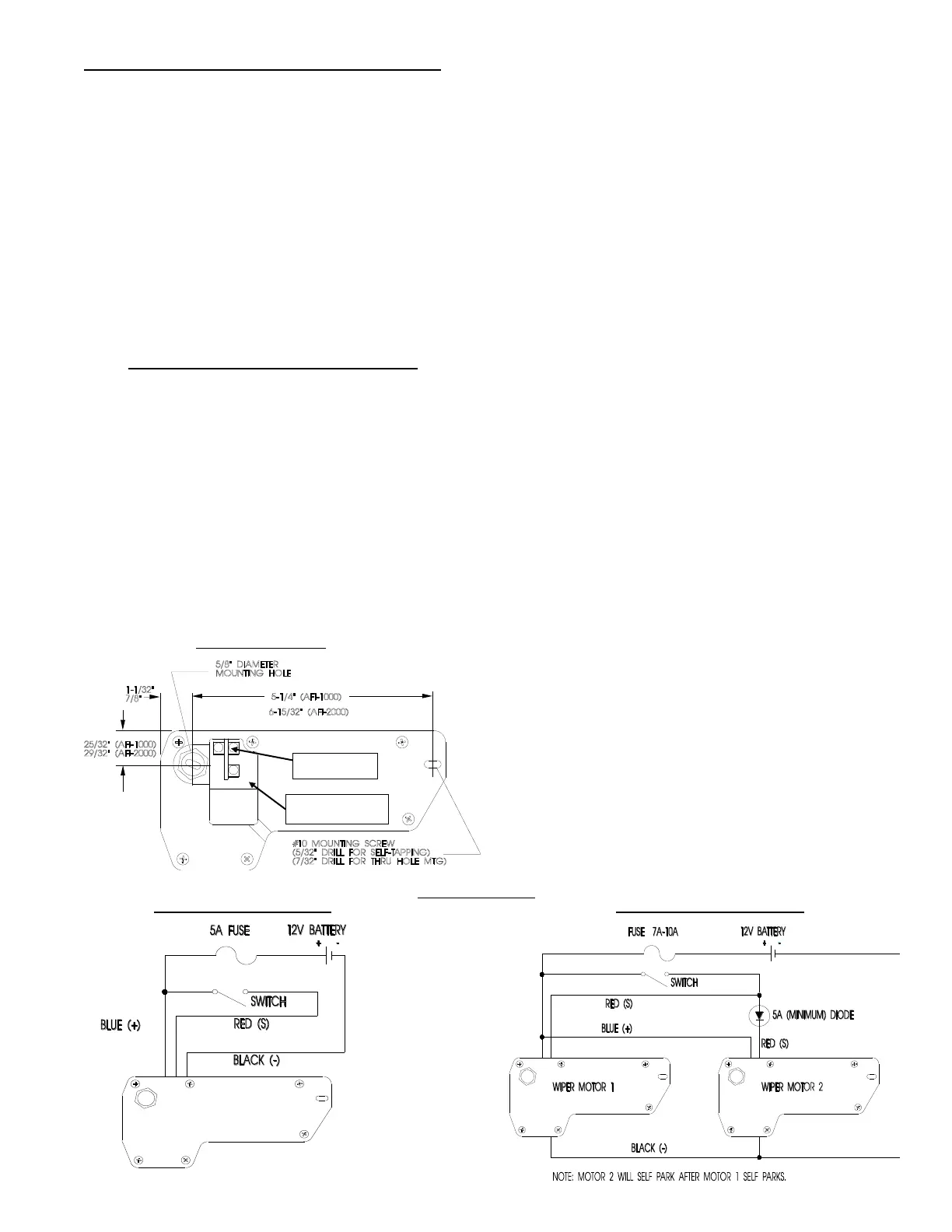 4. Before mounting, connect wiring to wiper motor (see diagram).
