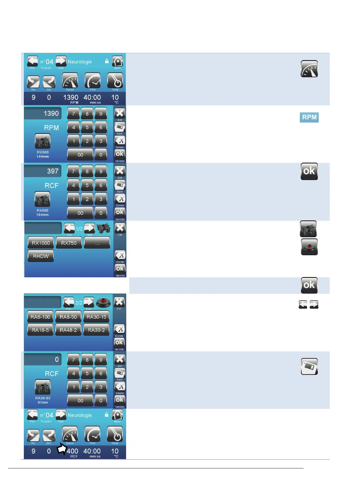 Press on the icon RPM to modify the unit from RPM to RCF.