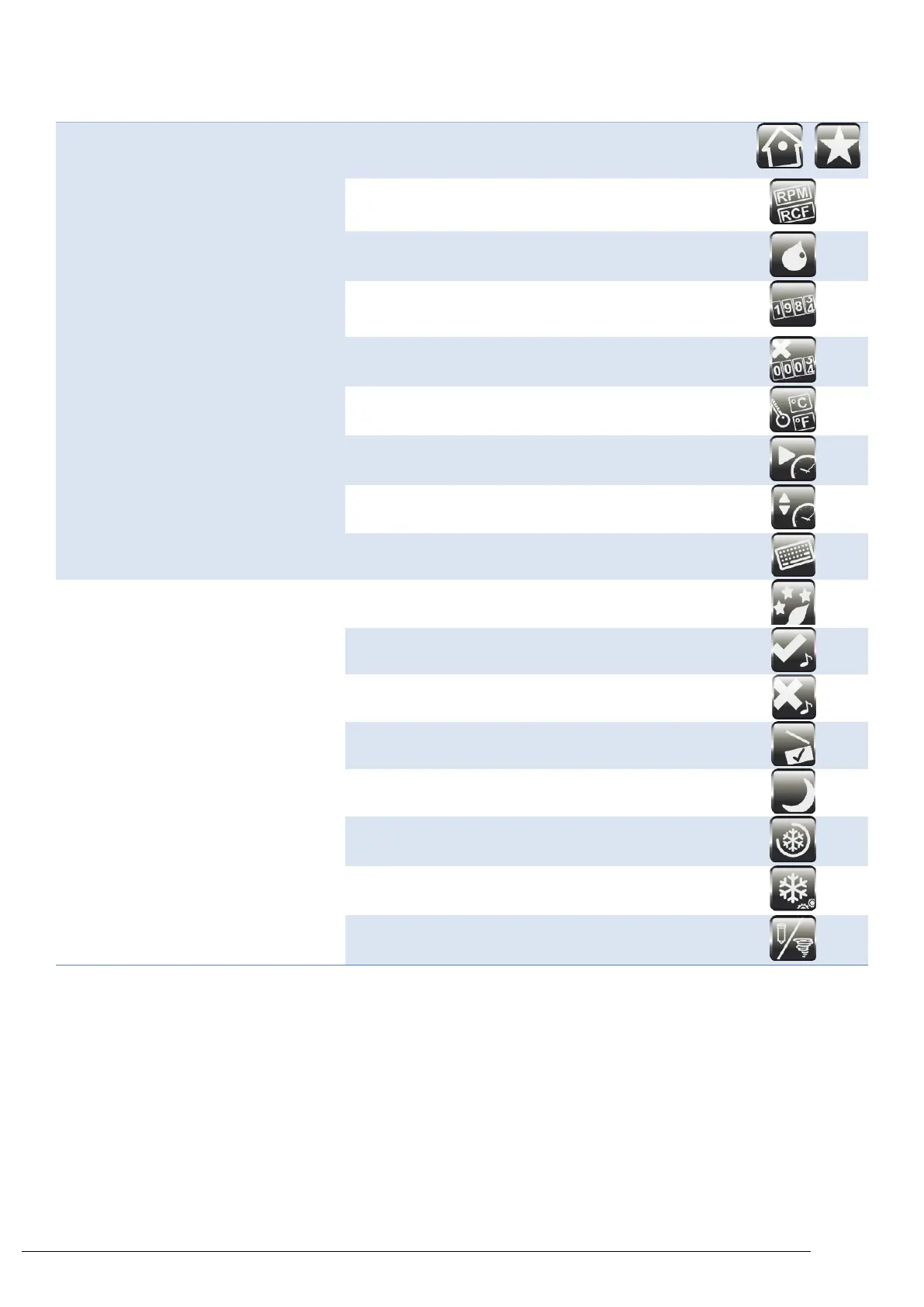 Type of speed displayed: RPM or RCF (G force)