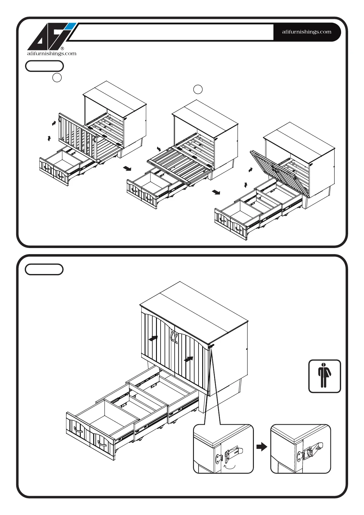 Lift the door and latch to side panel as